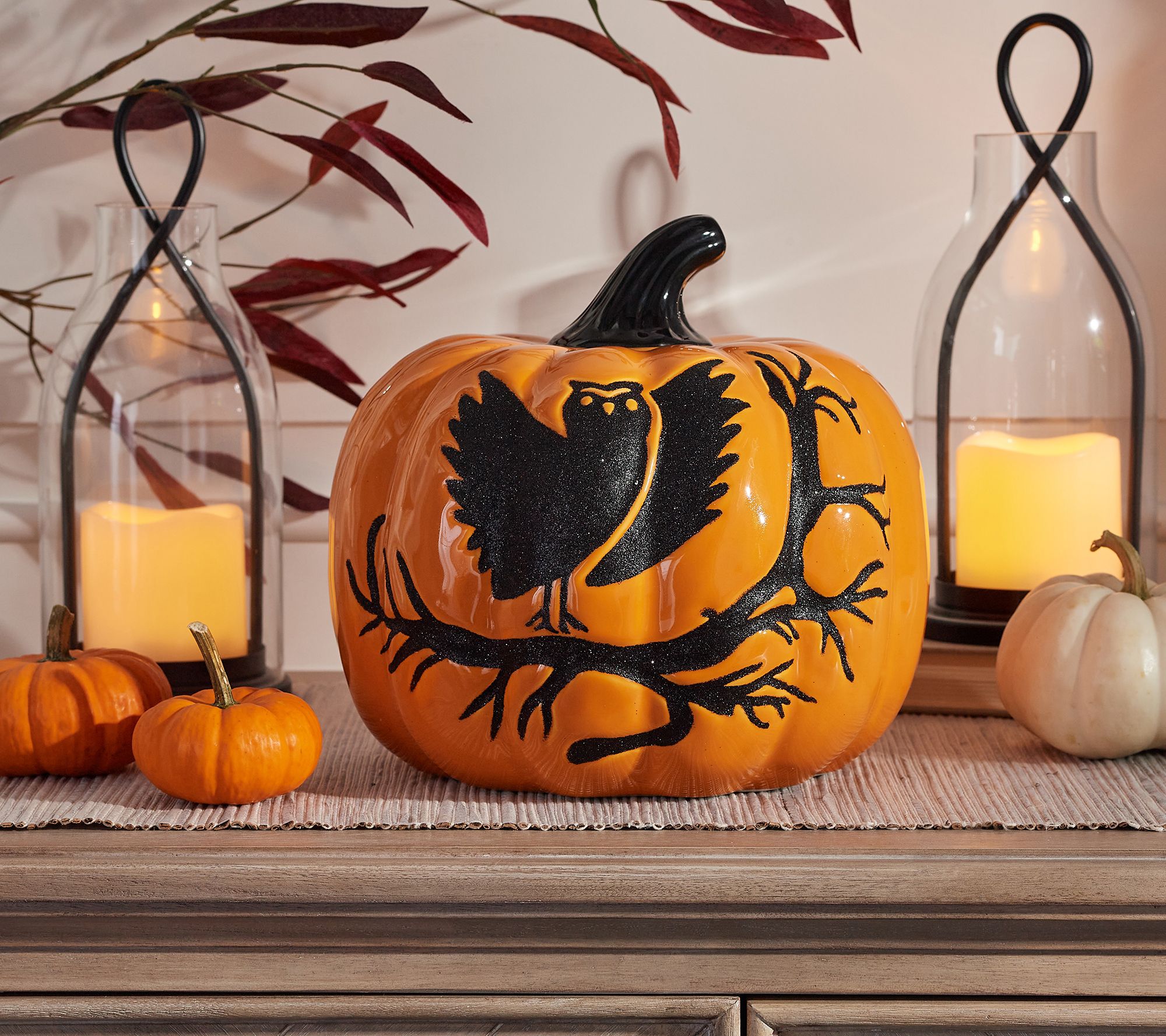 "As Is" Martha Stewart Ceramic Pumpkin with Glitter Owl
