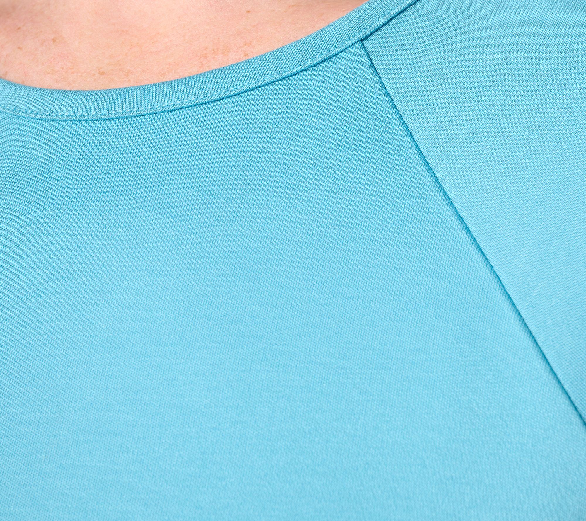 • Features: round neckline, seaming details, dolman short sleeves, straight hem