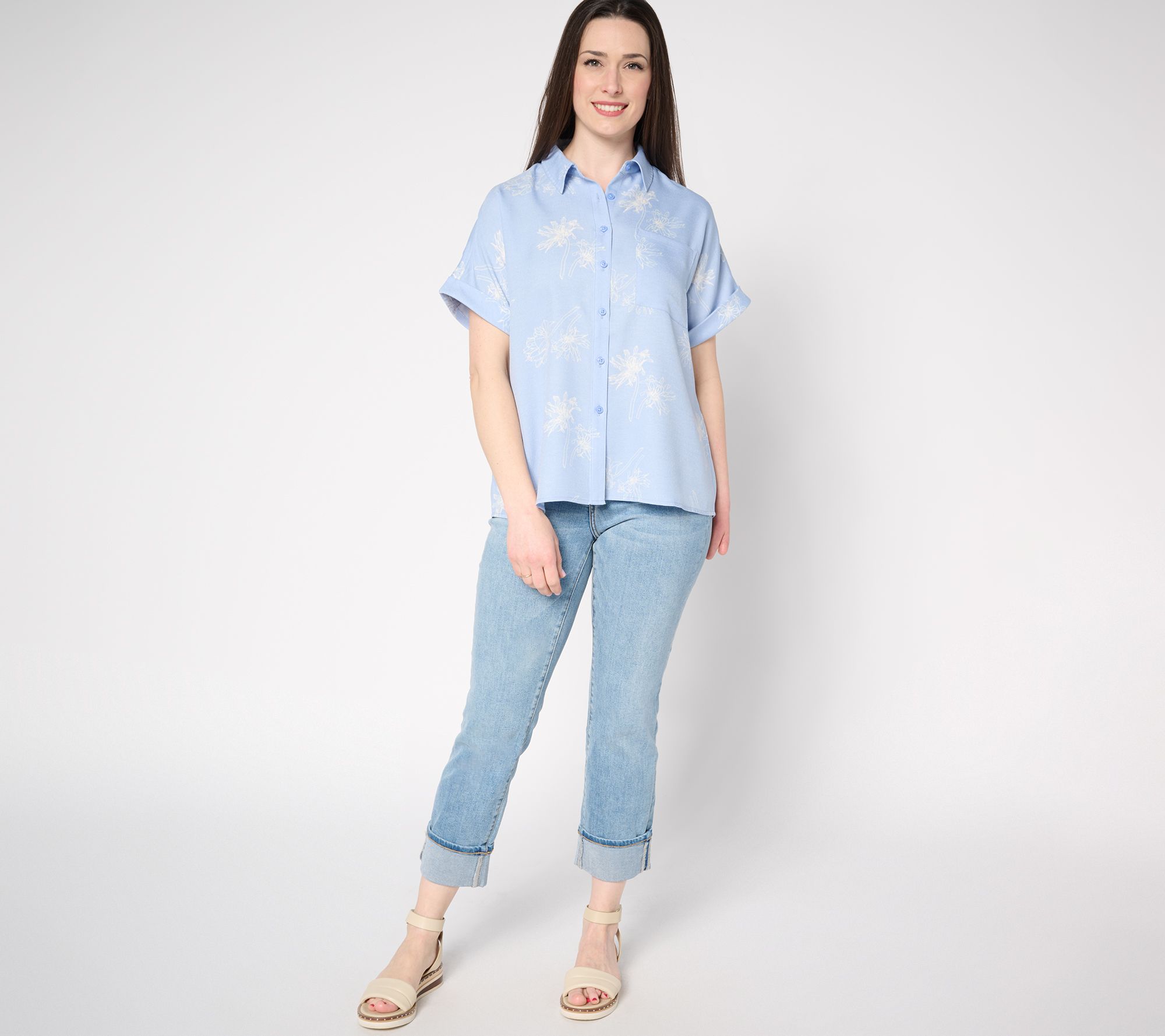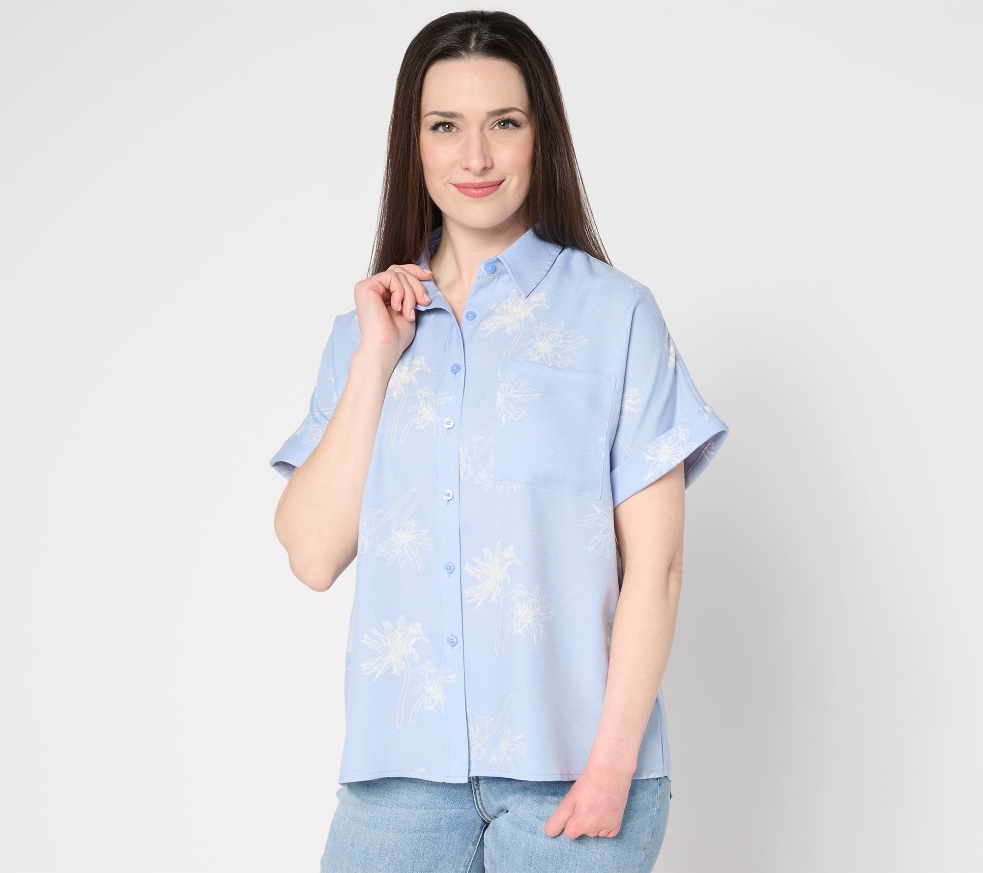When your schedule is full or you just want to keep things easy, reach for this short-sleeve printed shirt. The button-front design gives you options -- wear it open over a tank or buttoned-up with your favorite jeans. From Martha Stewart.
