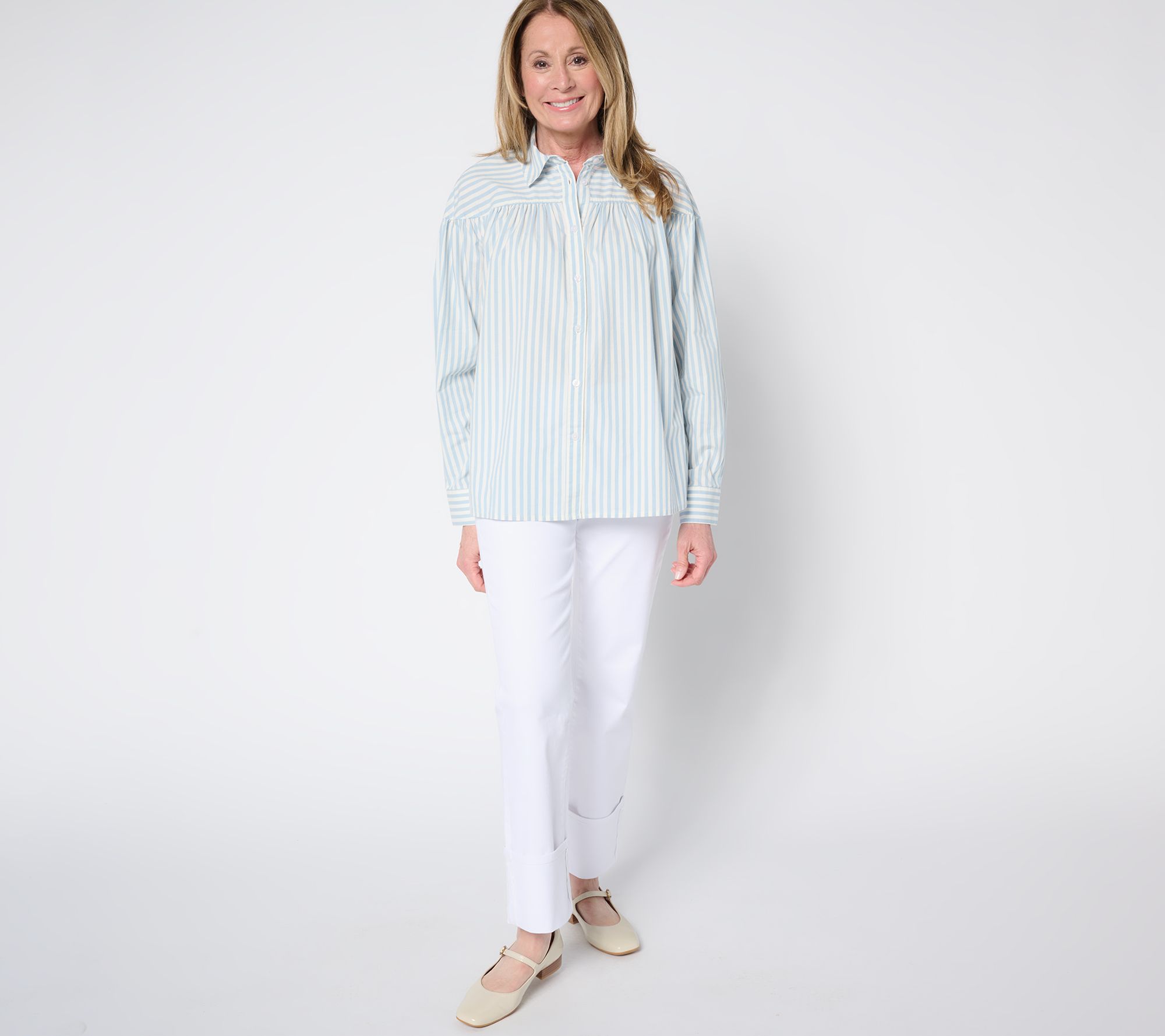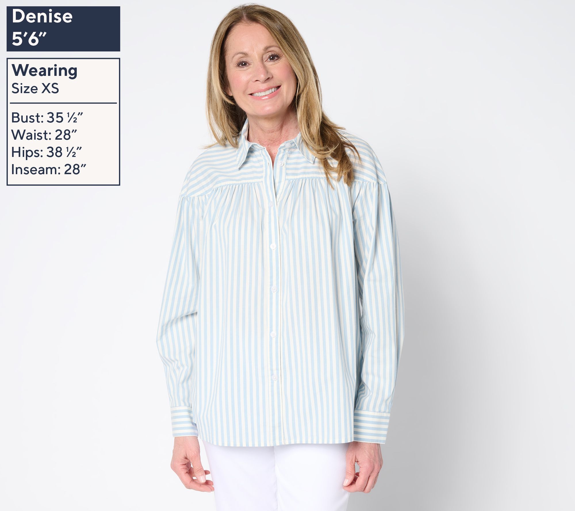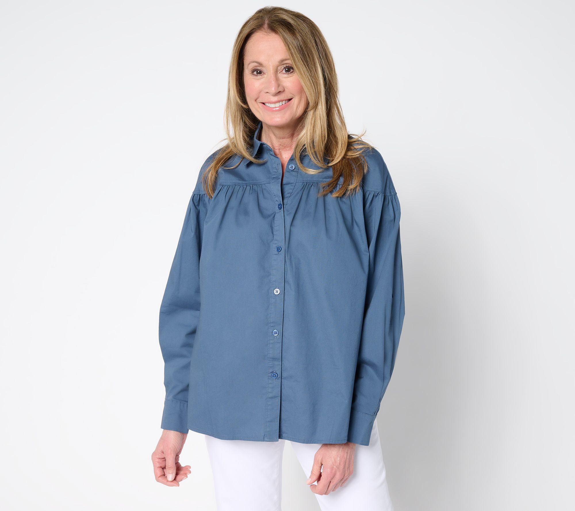 "As Is" Martha Stewart Signature Shirred Woven Button Top