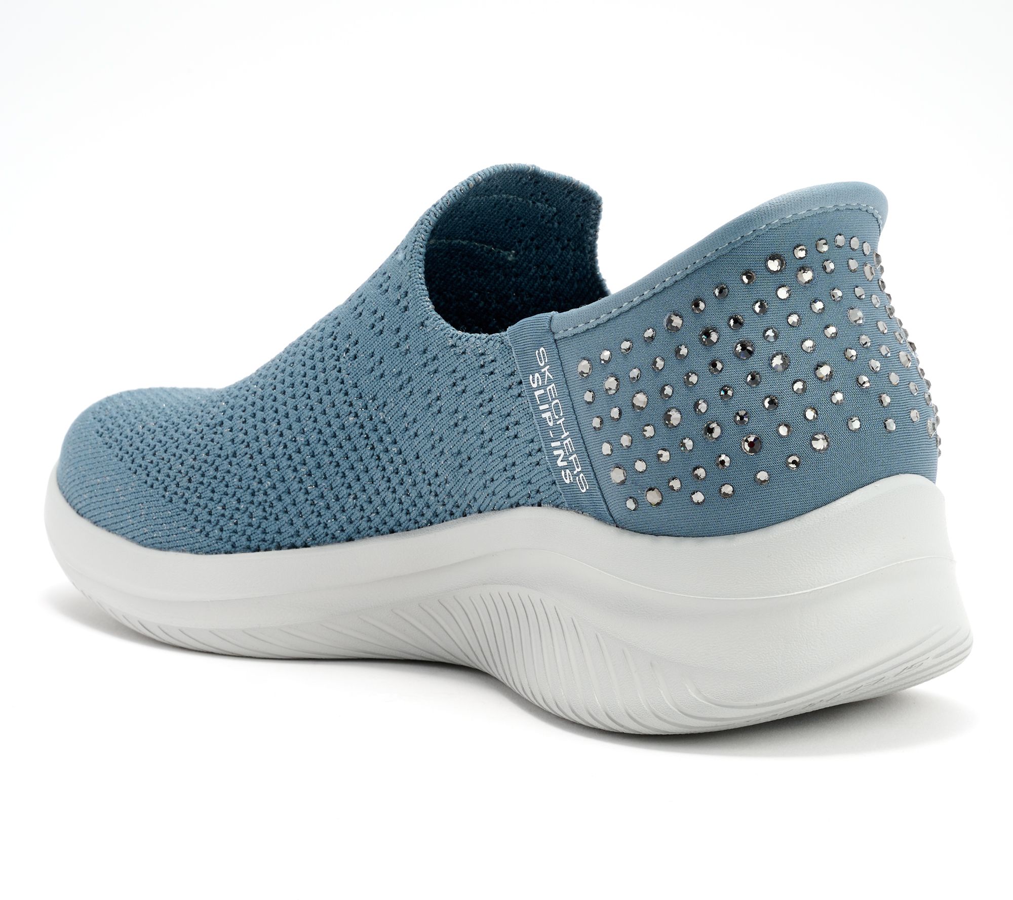 Add a touch of glamour to your everyday look with these sparkly slip-on shoes. Featuring a metallic knit upper adorned with rhinestone embellishments and a memory foam cushioned comfort insole, these shoes offer both style and comfort. The heel pillow ensures a secure fit, making them ideal for hands-free wear. From Martha Stewart x Skechers.