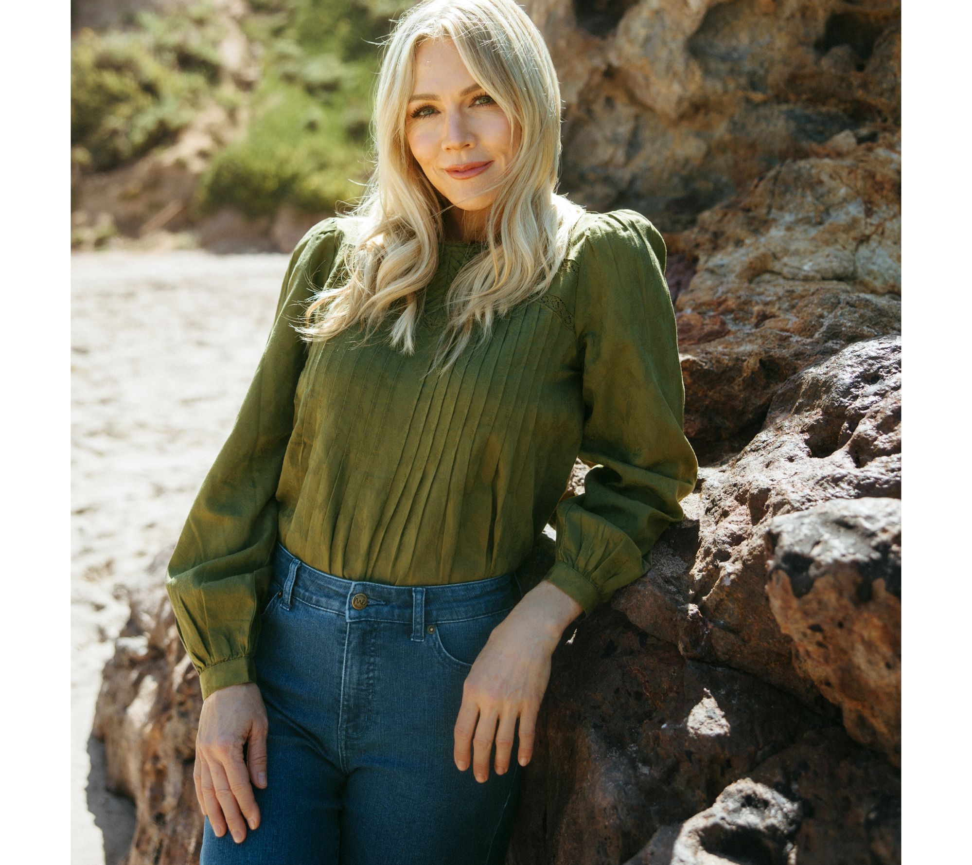 "As Is" Me by Jennie Garth Bay Woven Blouse with Pleating