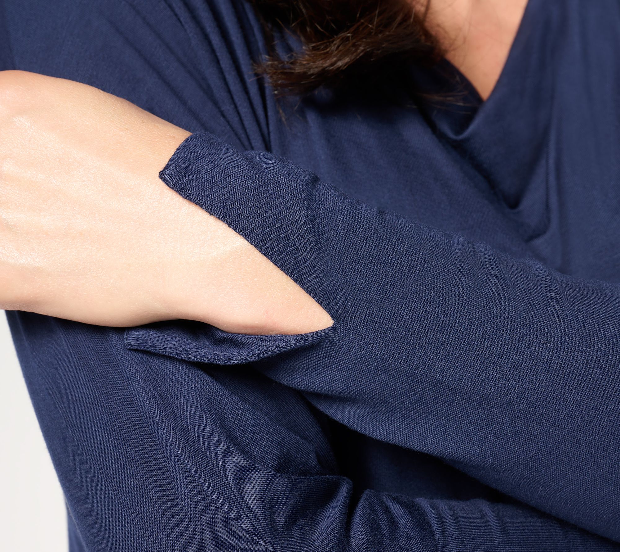 With a chic cowl neckline and blouson-like silhouette, this everyday knit top gracefully drapes over the body. Wear it with jeans and sneakers on a casual day out or dress it up with tailored trousers and kitten heel pumps. From Me by Jennie Garth.