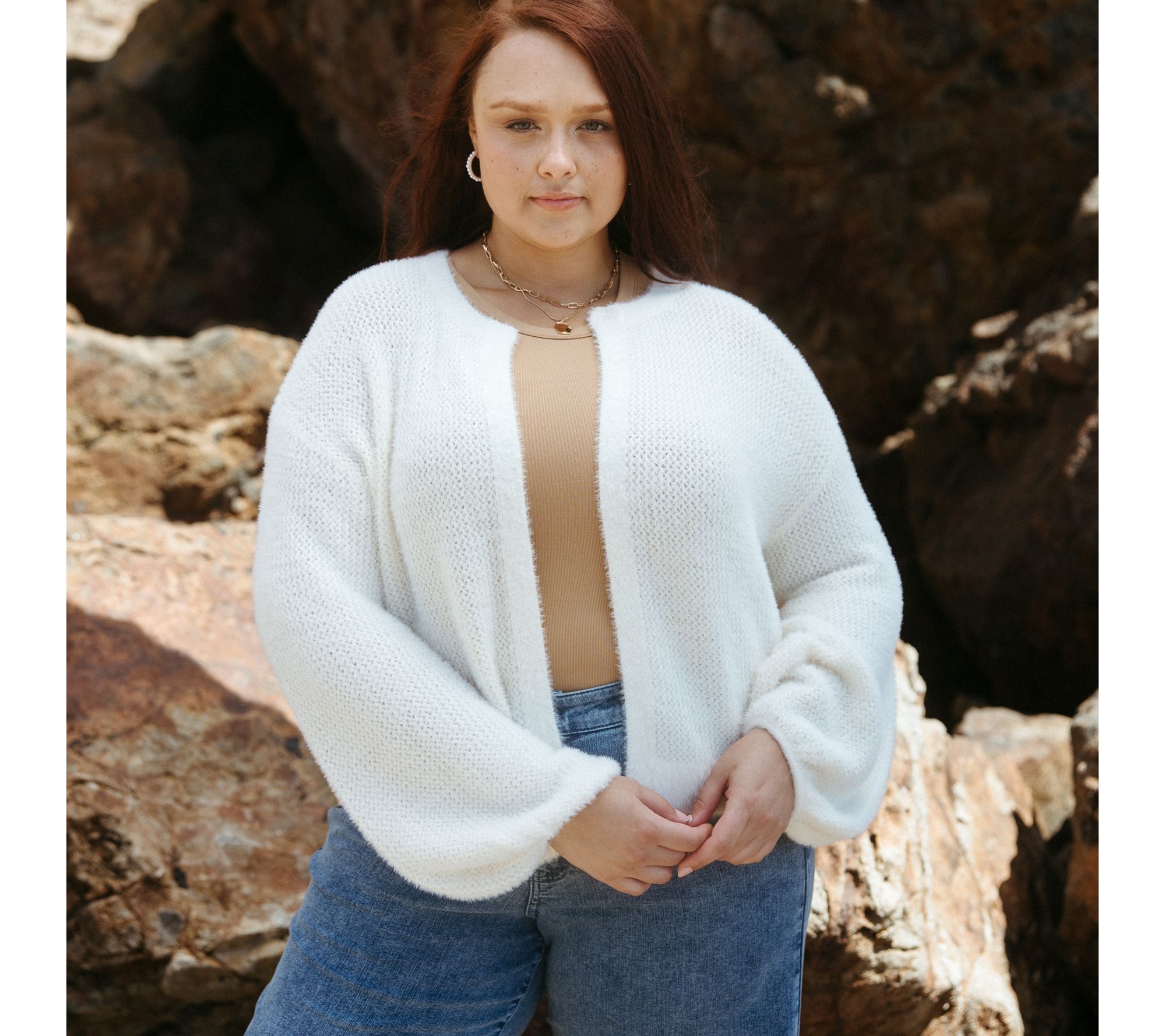 Embrace cozy elegance with this open-front cardigan. The perfect addition to your layering essentials, it features roomy blouson sleeves and a relaxed fit for ease of movement. From Me by Jennie Garth.