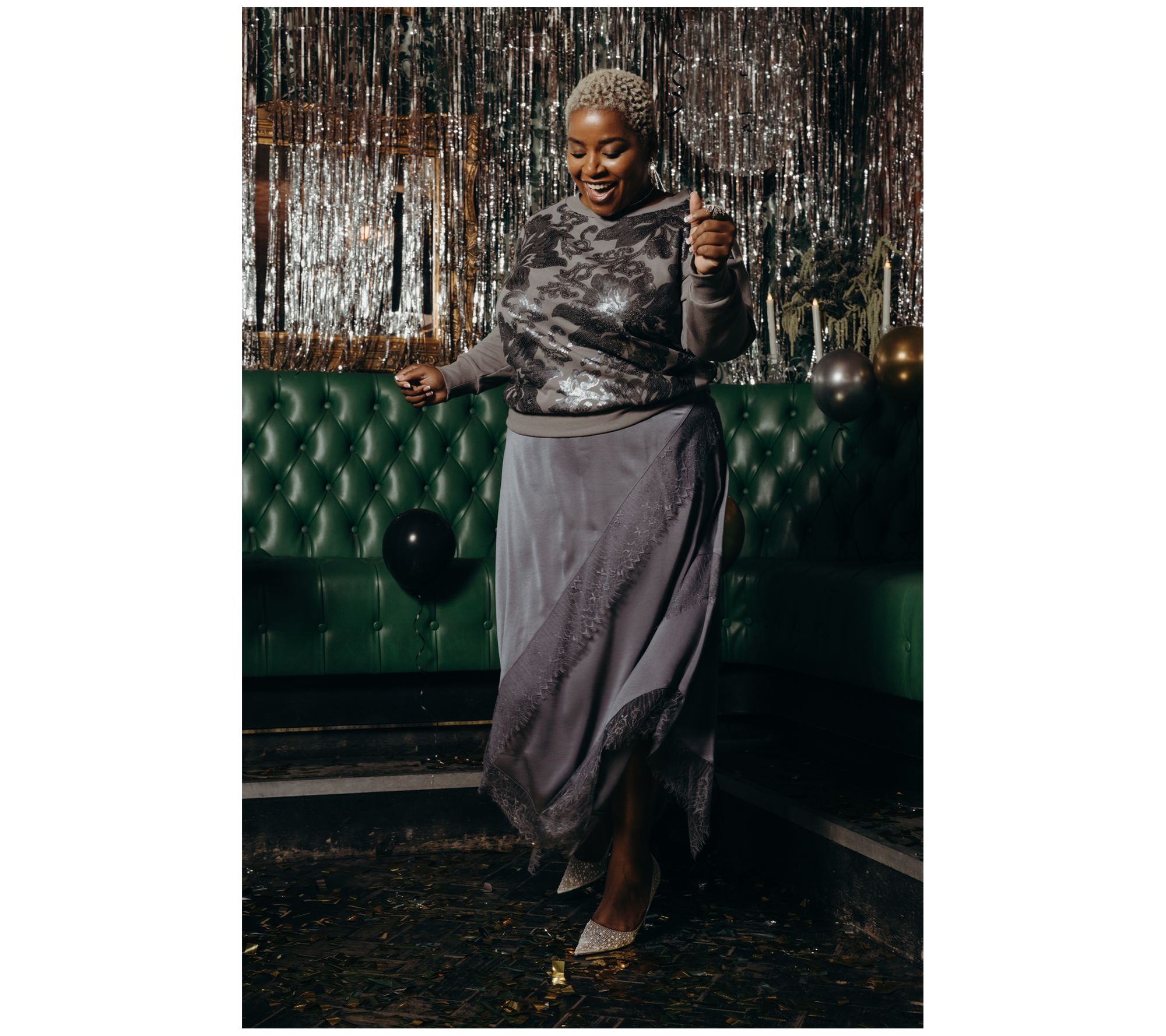 • Features: embellishments on front; ribbed detail at neckline, sleeve cuffs, and bottom hem; cropped length; drop shoulder