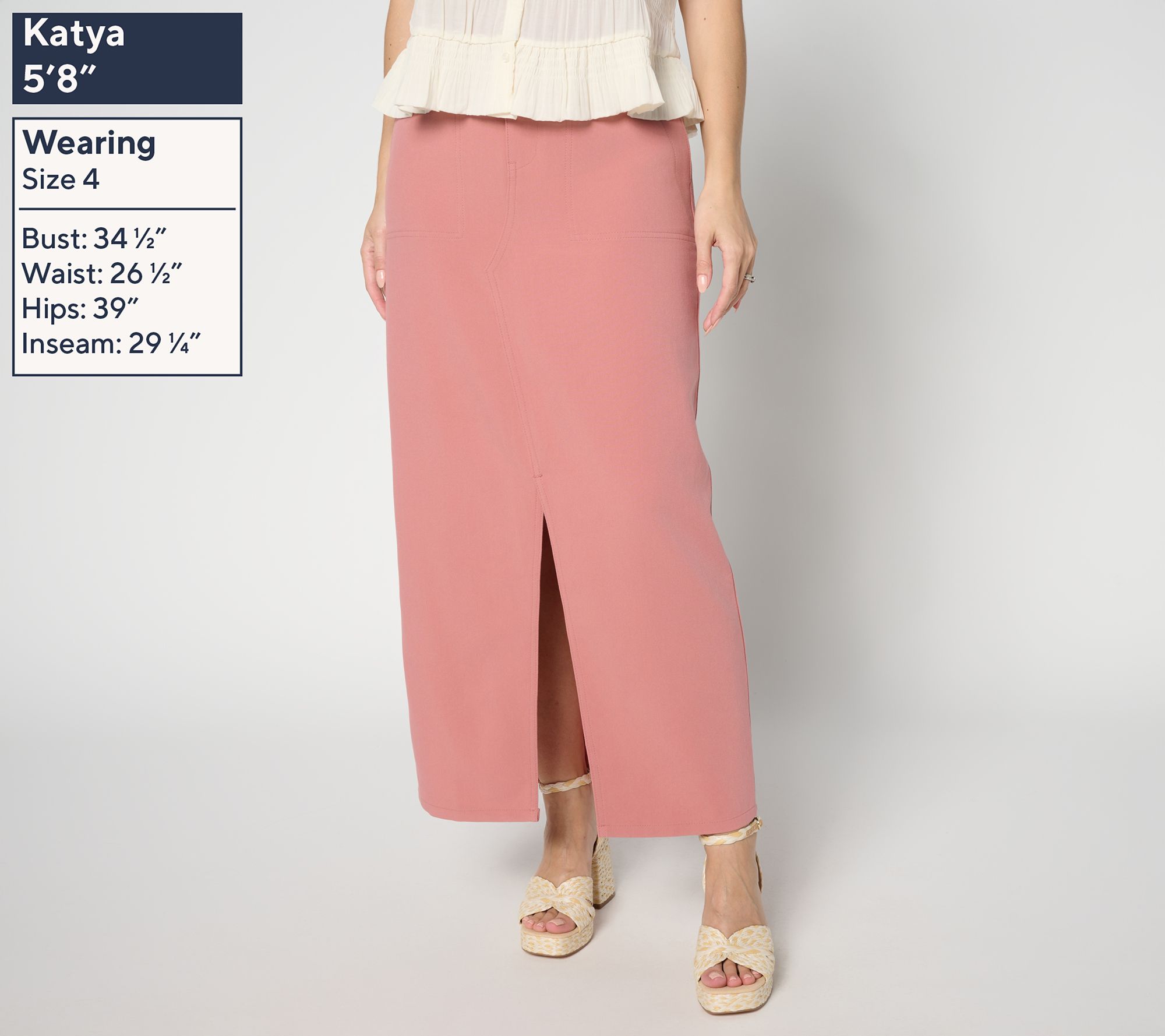 Let your style take the lead at everything from brunch meetups to gallery strolls with this woven utility maxi skirt. The center front slit and self belt loops add function and flair, while flap back pockets keep essentials within reach. Dress it up or down for any occasion. From Me by Jennie Garth.