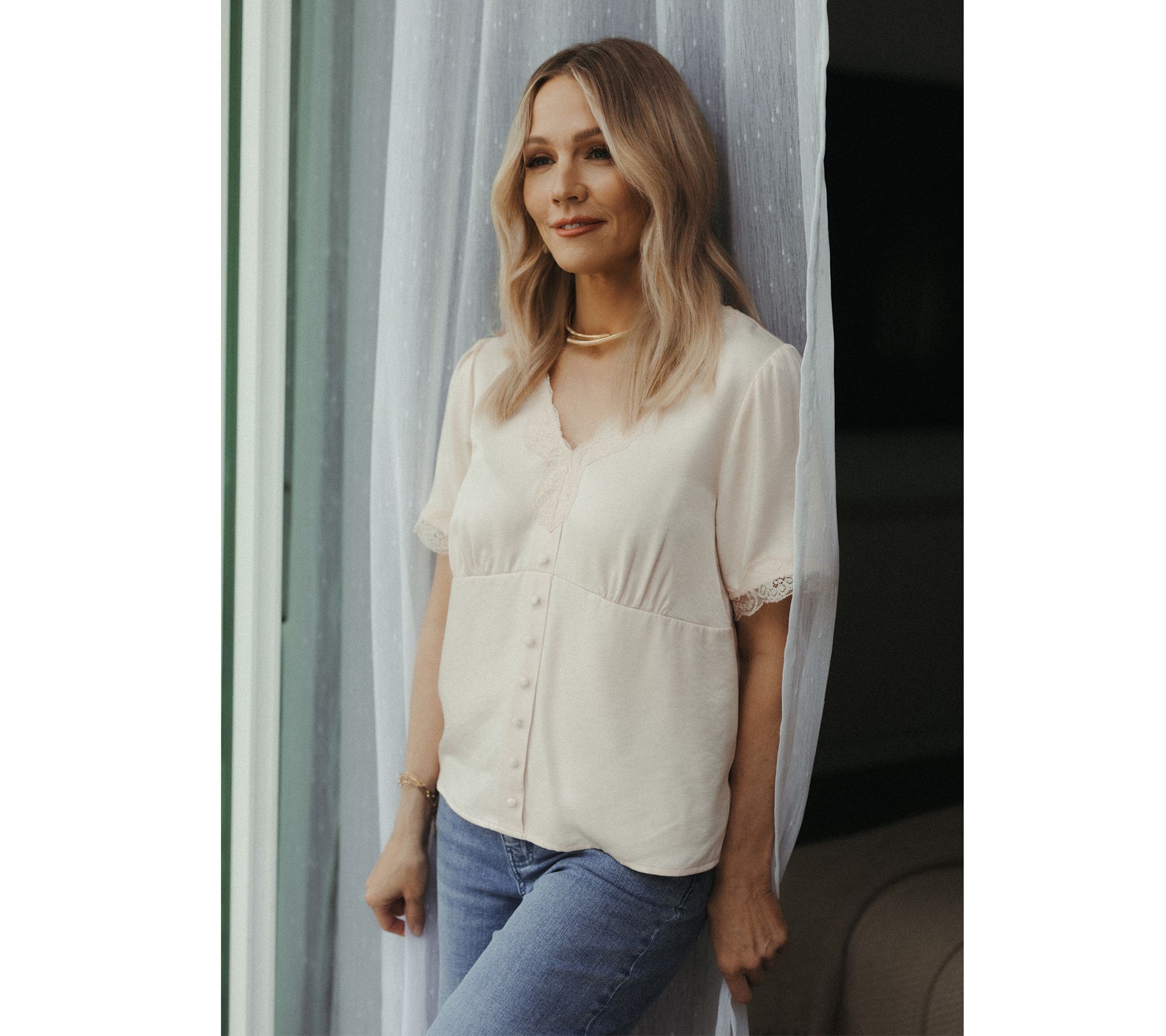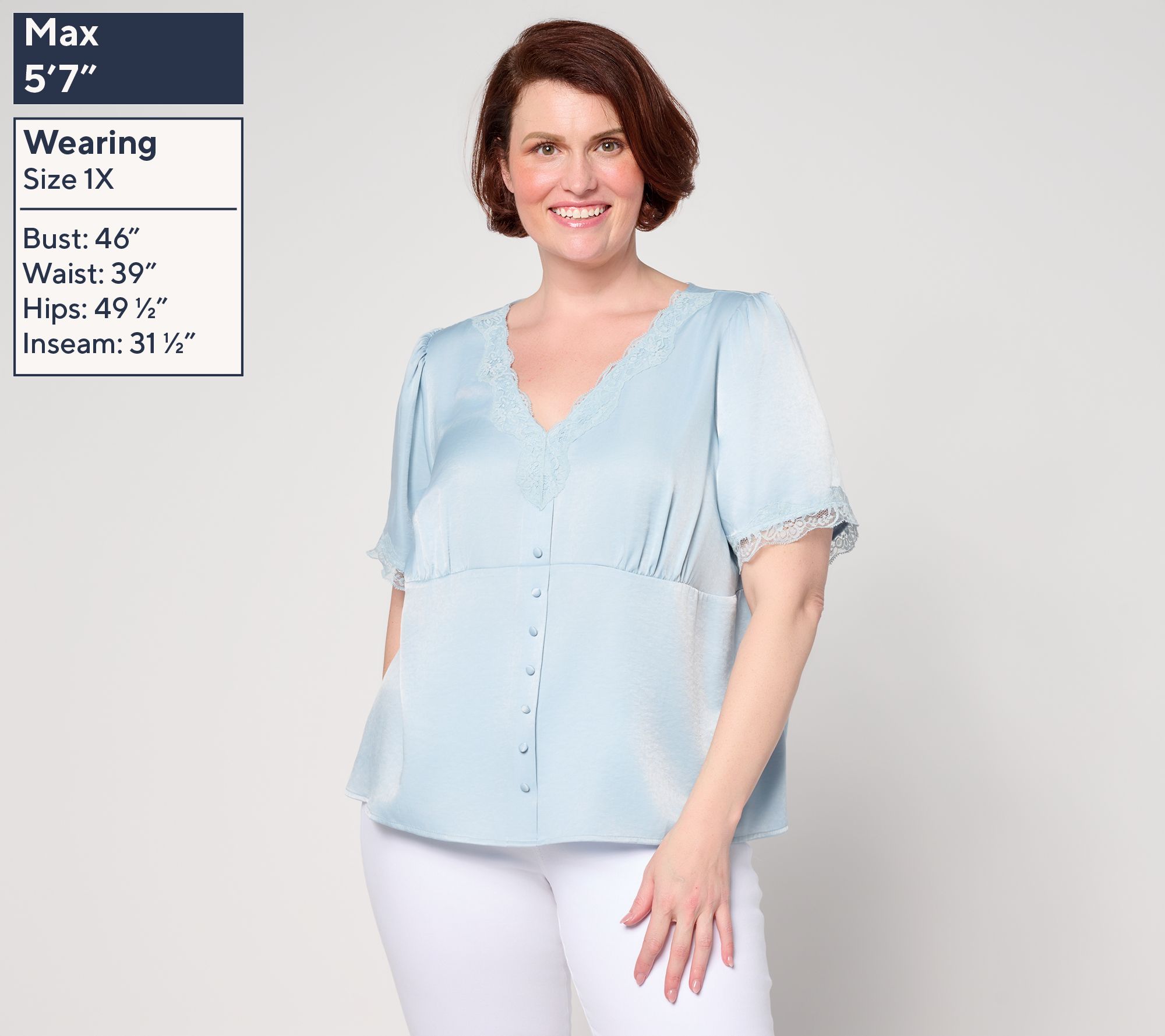 "As Is" Me by Jennie Garth Short Sleeve Starlet Satin Blouse