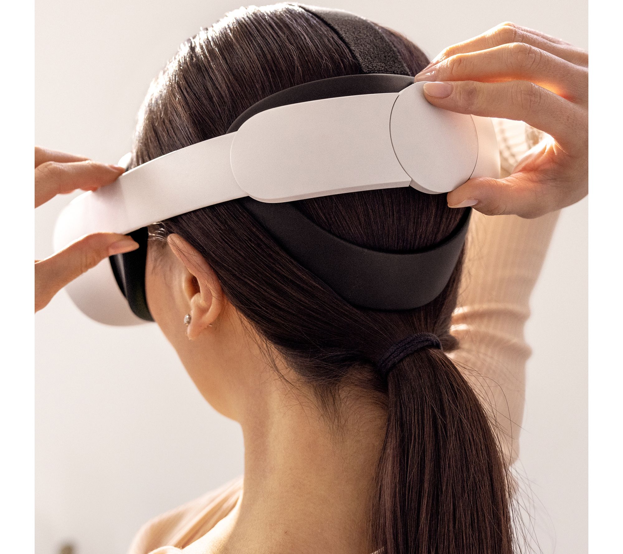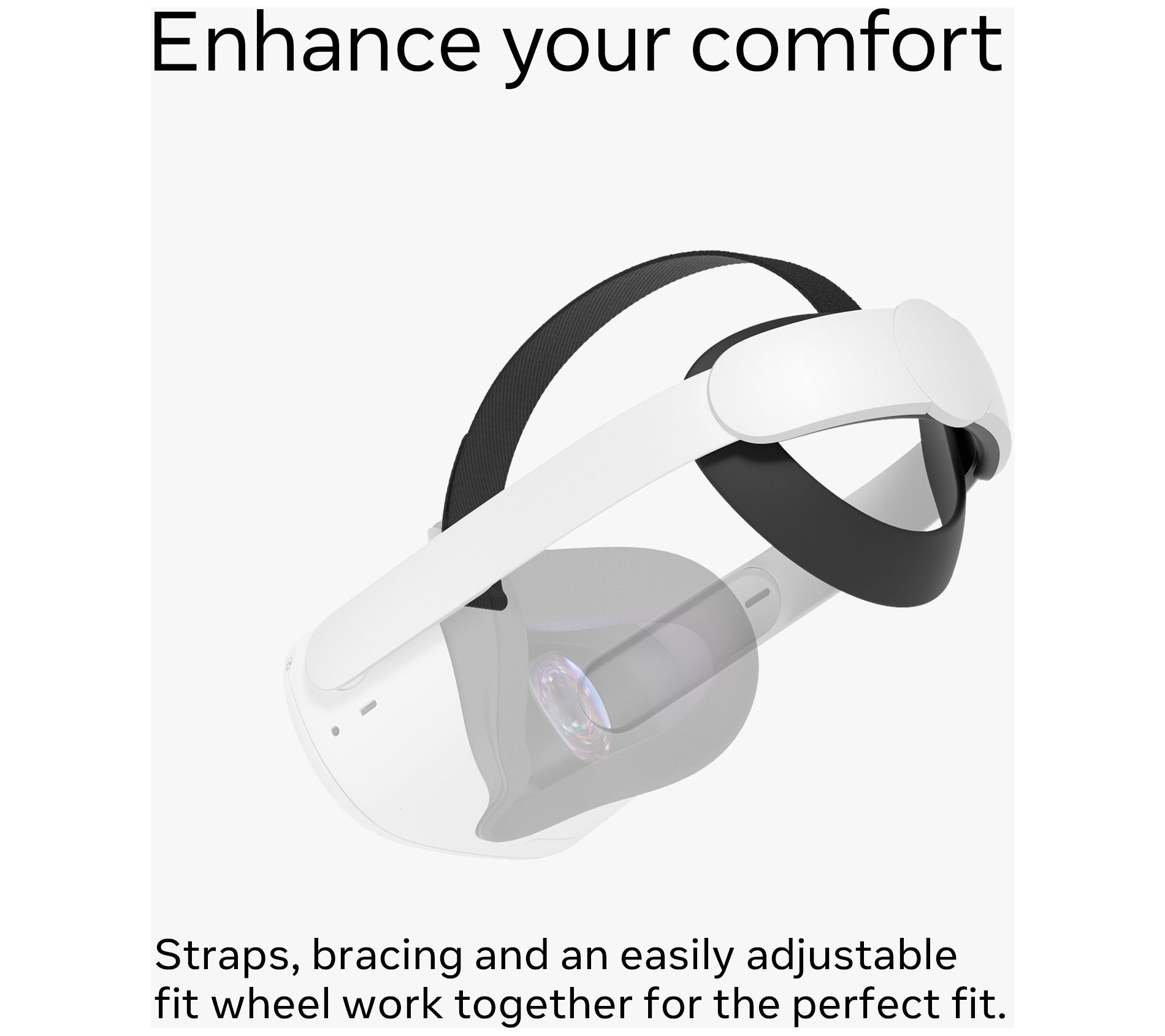 • Approximate measurements: Headset 10.2" x 7.4" x 5"; Strap 11.5" x 5" x 8"