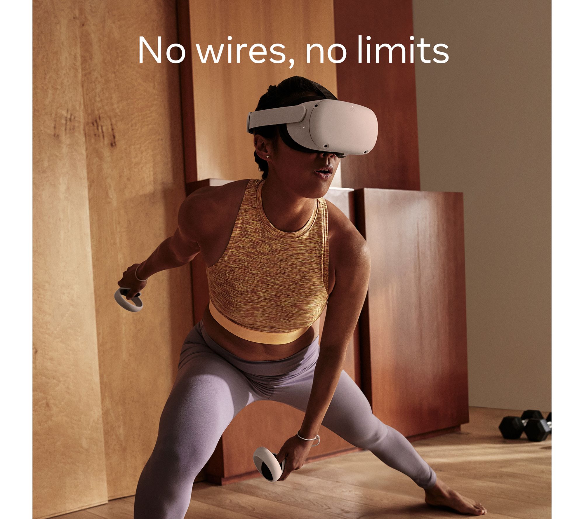 Step into a new world -- the world of virtual reality -- with the Meta Quest 2. The all-in-one VR headset requires no computer or additional hardware to put you right into the game. Experience total immersion with 3D positional audio, hand tracking, and haptic feedback, working together to make virtual worlds feel real. Travel universes in blockbuster fantasies, find your new workout crew, or collaborate with colleagues in innovative workspaces. You can even sit front row with friends and family at movies and live events!