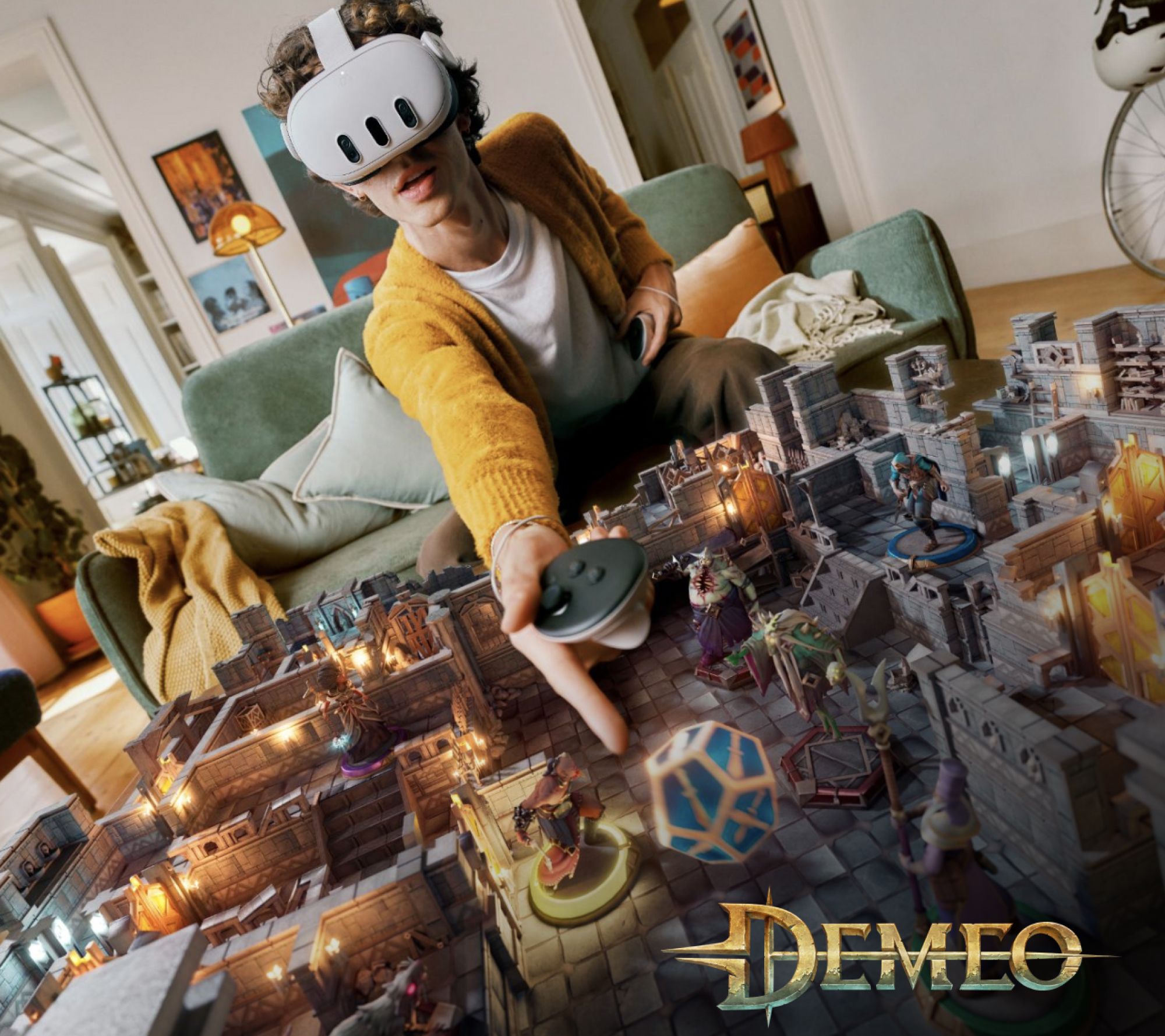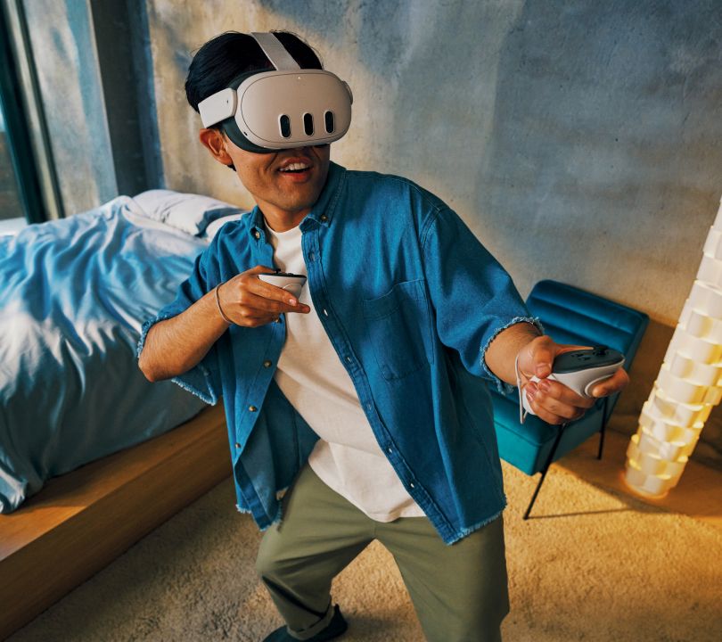 • Includes Quest 3 headset with adjustable standard facial interface, left and right Touch Plus controllers, two wrist straps, power adapter, and charging cable