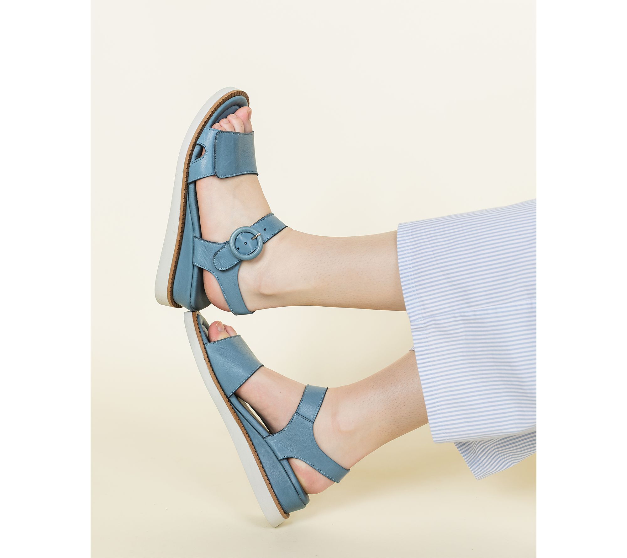 Stroll confidently from outdoor markets to neighborhood walks in these sporty leather sandals, crafted with a supple European leather upper and cushioned dual-density insole. The adjustable buckled ankle strap offers a personalized fit, while a low heel adds just the right lift for both casual outings and weekend adventures. From Miz Mooz.