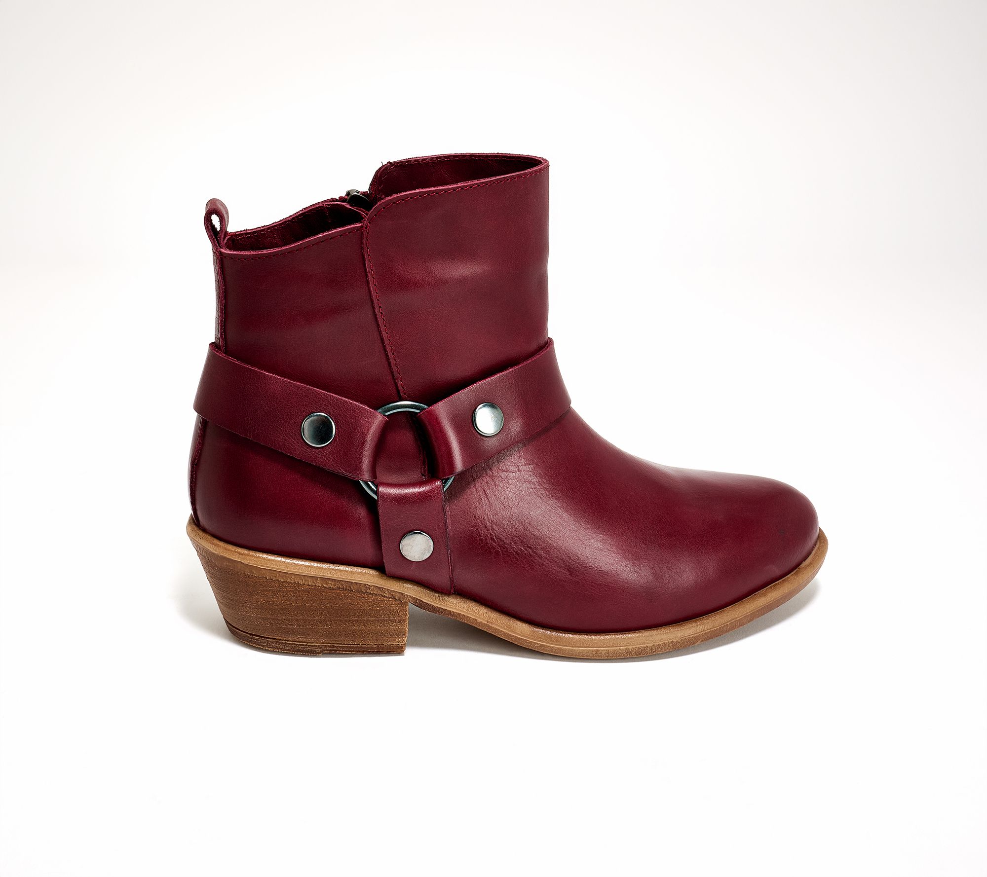 Weekend plans call for boots that combine easygoing charm with refined details, and these leather ankle boots fit the bill. Supple European leather and a harness accent add personality, while the cushioned footbed and low heel provide support as you move from brunch to evening plans. The inside zip streamlines your routine so you can get out the door and on with your day. From Miz Mooz.