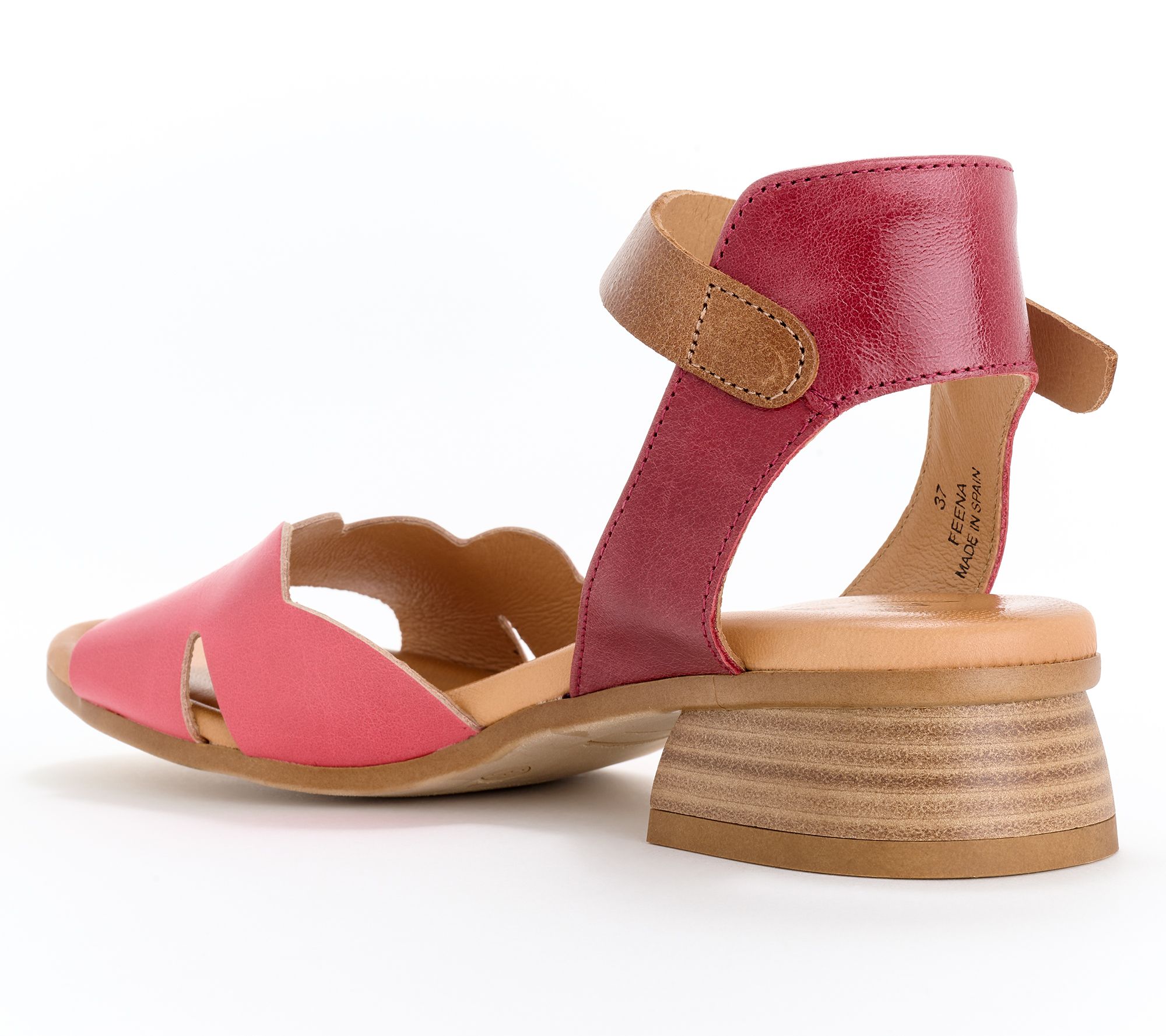 • Adjustable ankle strap, buckle closure, round toe