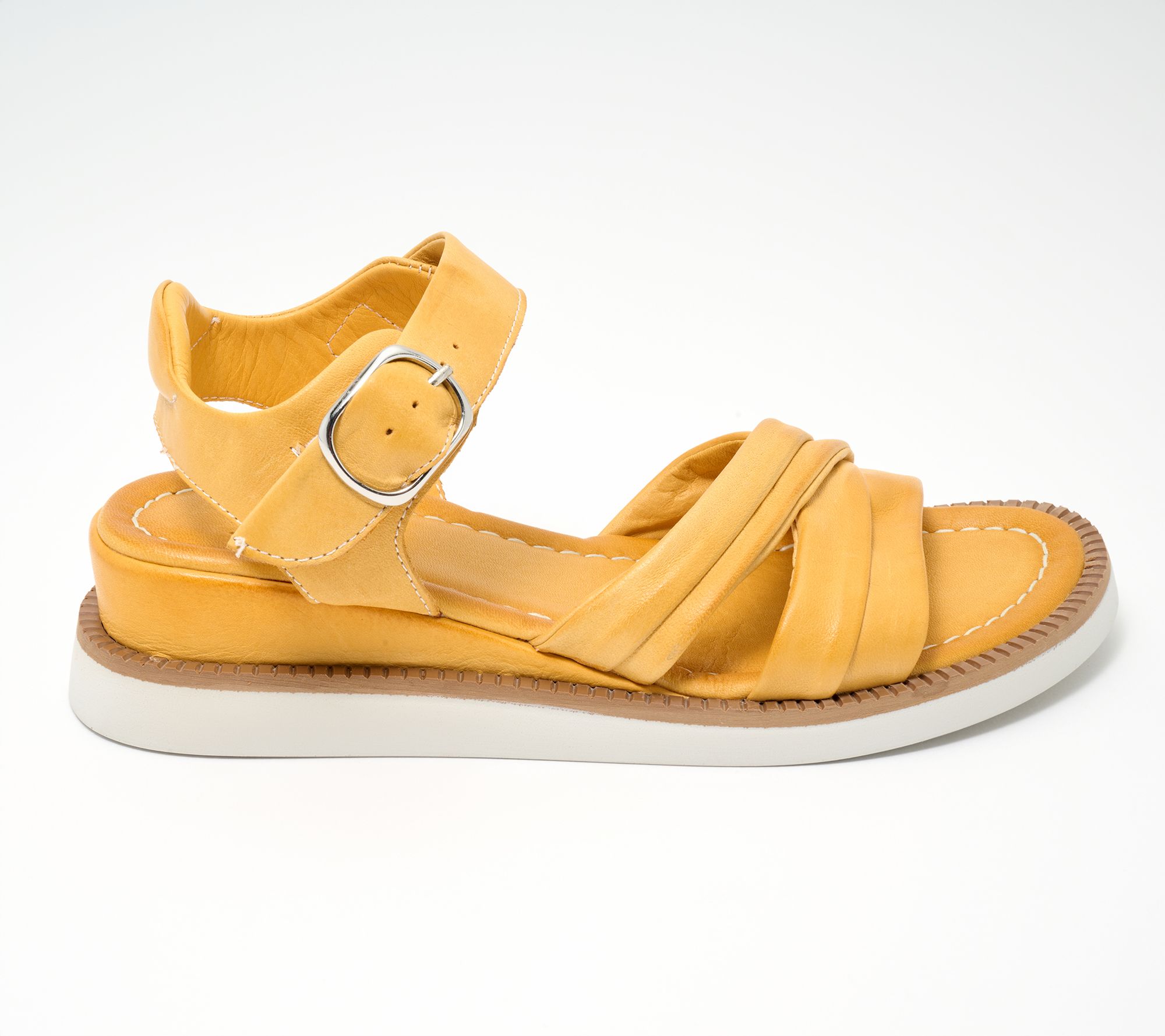 Sunny days call for a staple that combines comfort and style effortlessly. Slide into luxury with these European leather sandals, perfect for breezy strolls by the beach or dining alfresco on a warm evening. The cushioned footbed pampers your feet, making every step a delight, while the buckle ankle strap ensures a fit as tailored as your day-to-day adventures. Pair them with a flowing sundress or your favorite cropped trousers for an instantly polished look. From Miz Mooz.