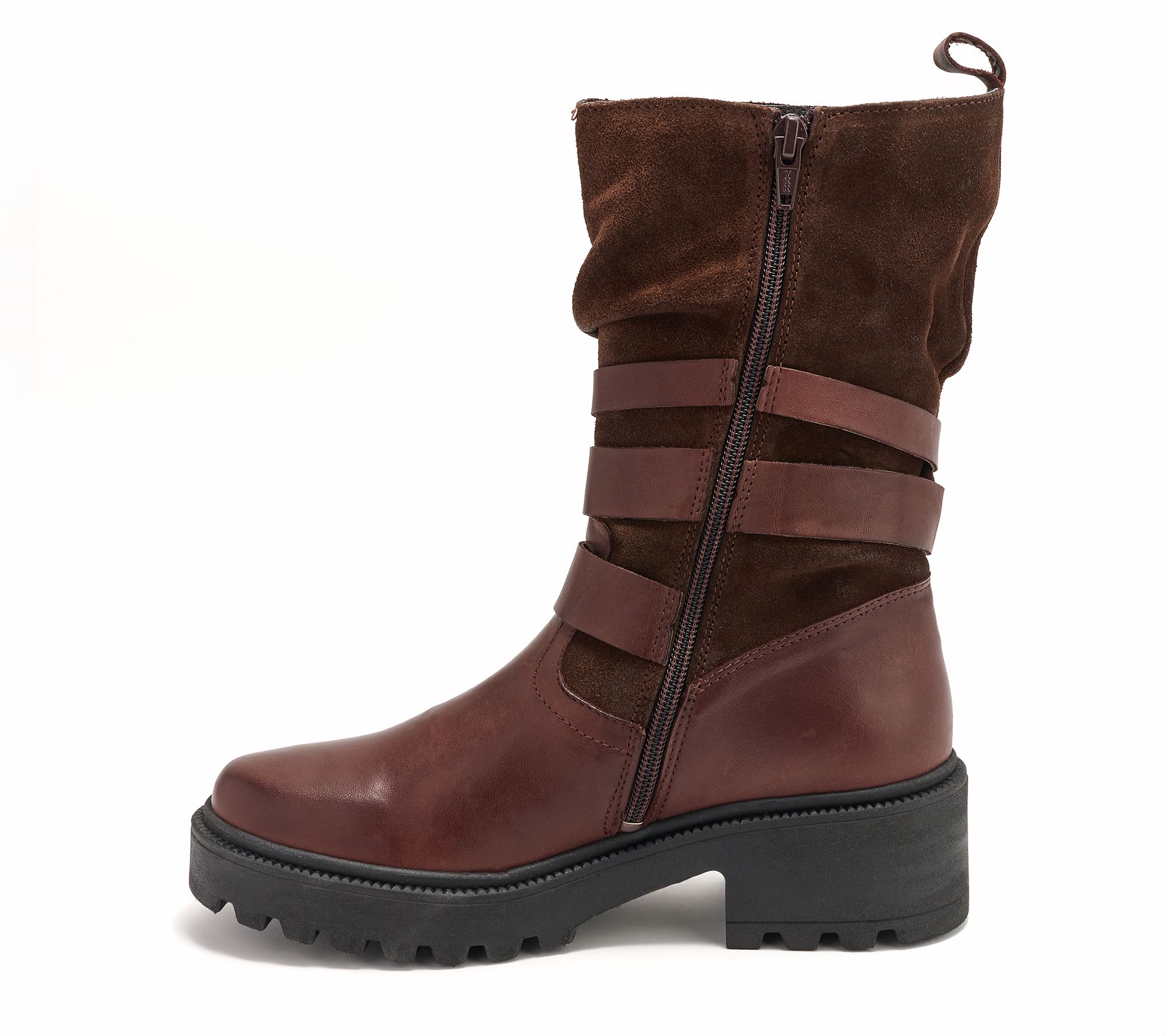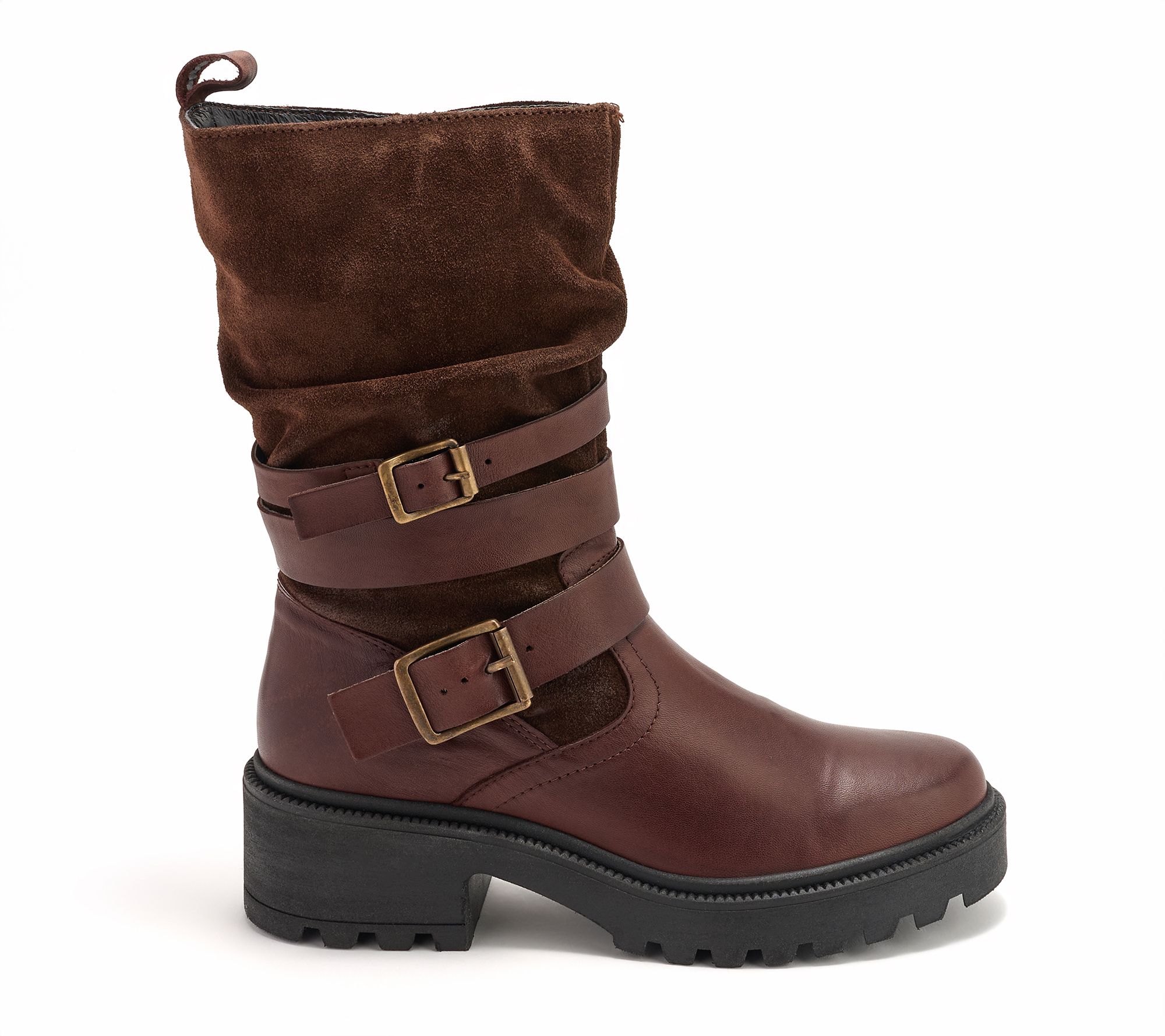 Refresh your seasonal wardrobe with these leather buckled mid boots, offering a blend of refined style and everyday comfort. Soft European leather, convenient inner zippers, and cushioned footbeds make them a versatile pick for everything from weekday errands to evenings out. From Miz Mooz.