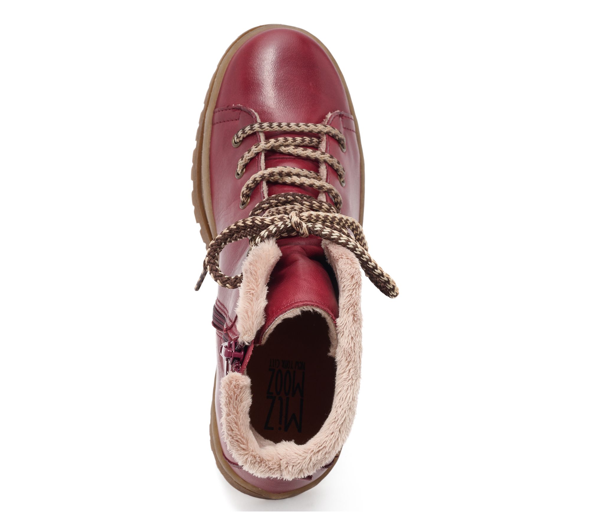 Enjoy chilly mornings and city strolls with these lace-up boots crafted of soft European leather and a plush, cozy lining. The lug outsole and cushioned footbed support your stride, while an inner zip lets you head out the door with ease. From Miz Mooz.