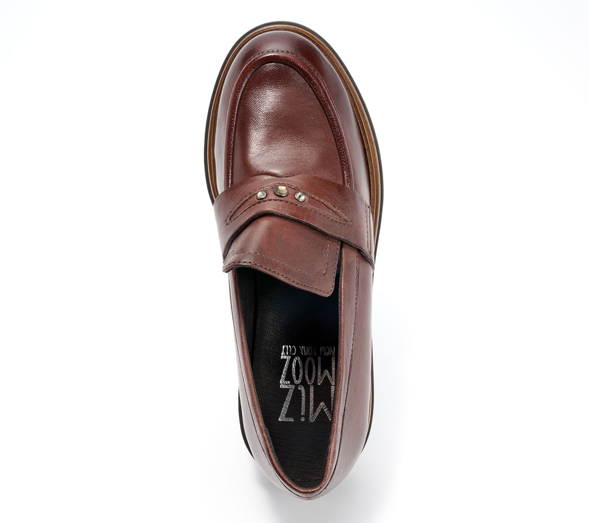 Crafted from soft European leather, these trend-right loafers feature a jewel stud detail for a hint of sparkle. The cushioned footbed keeps your tootsies comfy all day. From Miz Mooz.