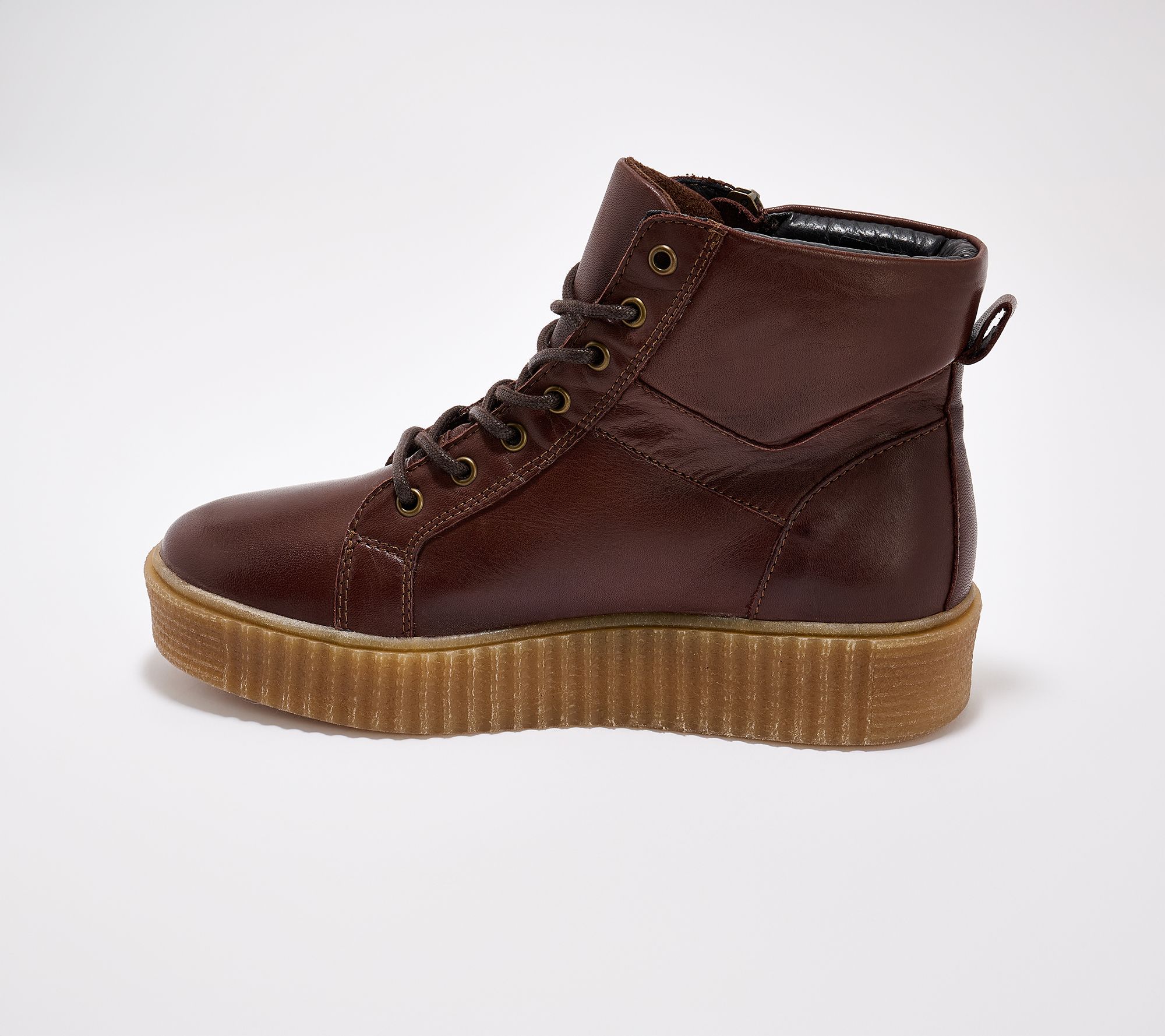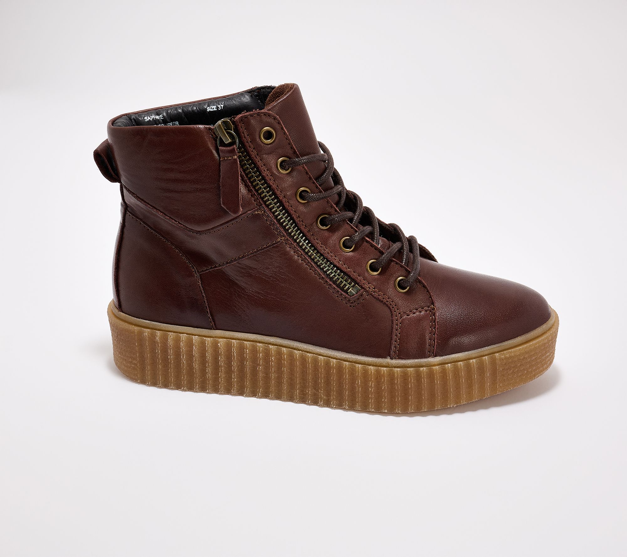 The cool-girl crossover your closet didn't know you needed. The leather Saphire is a high-top hybrid, balancing a little bit bootie with a little bit sneaker. Lace them up for a customized fit, then use the side zip for easy entry everytime. Their modern platform wedge gives you height without the hurt. Fresh, fearless, and so you. From Miz Mooz.