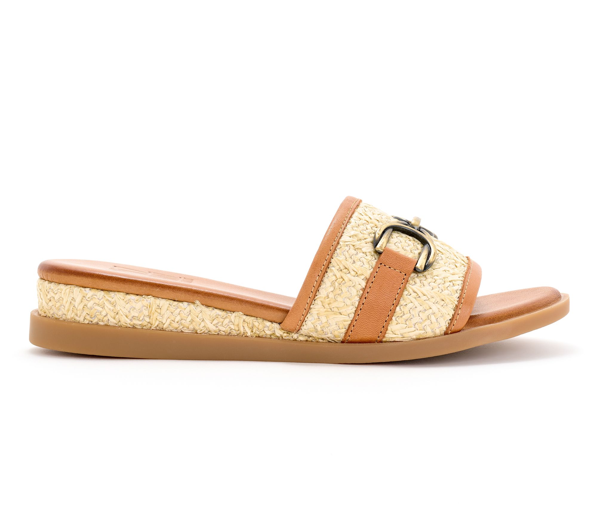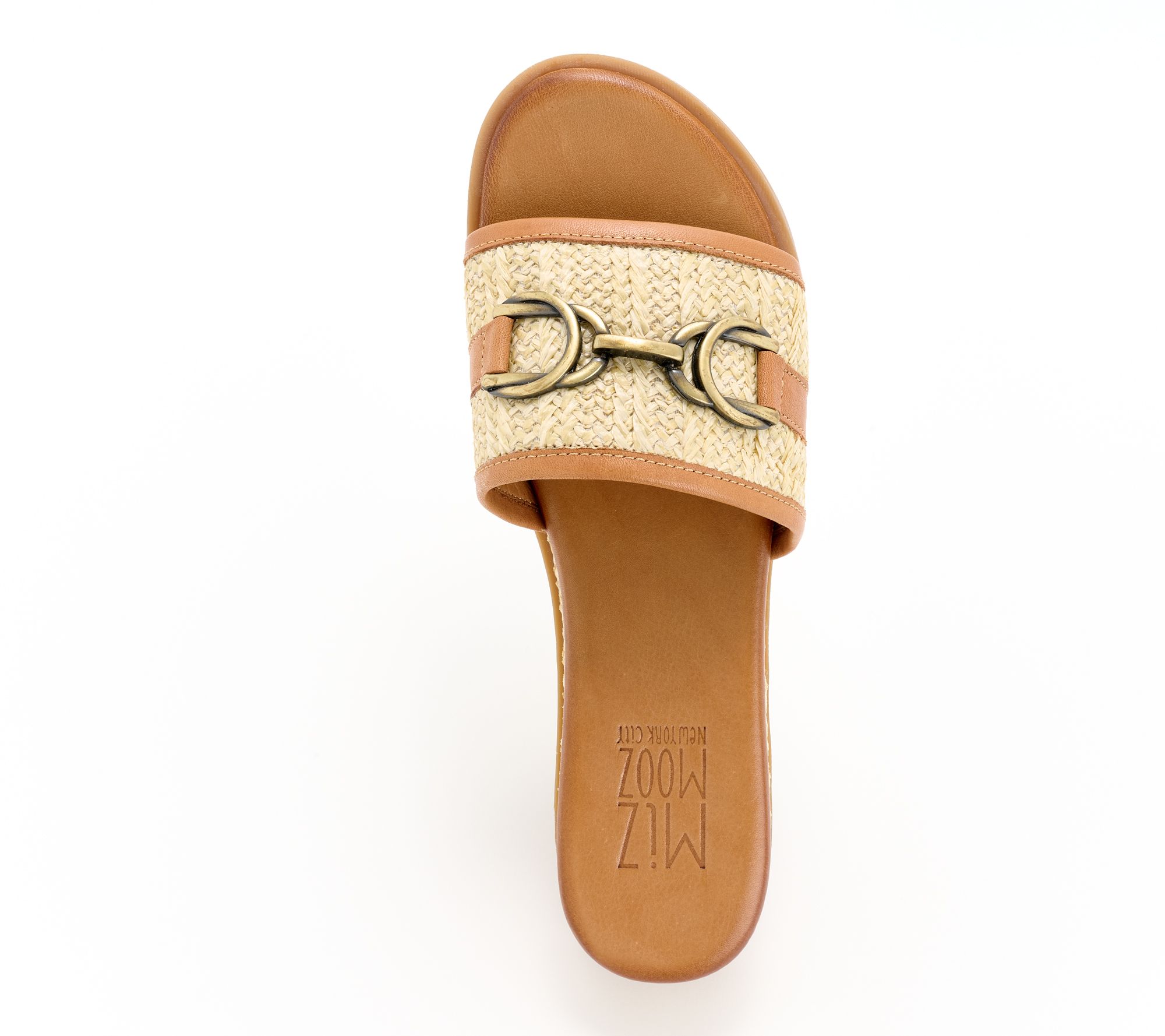 "As Is" Miz Mooz Leather and Raffia Slide Sandals - Wrenn
