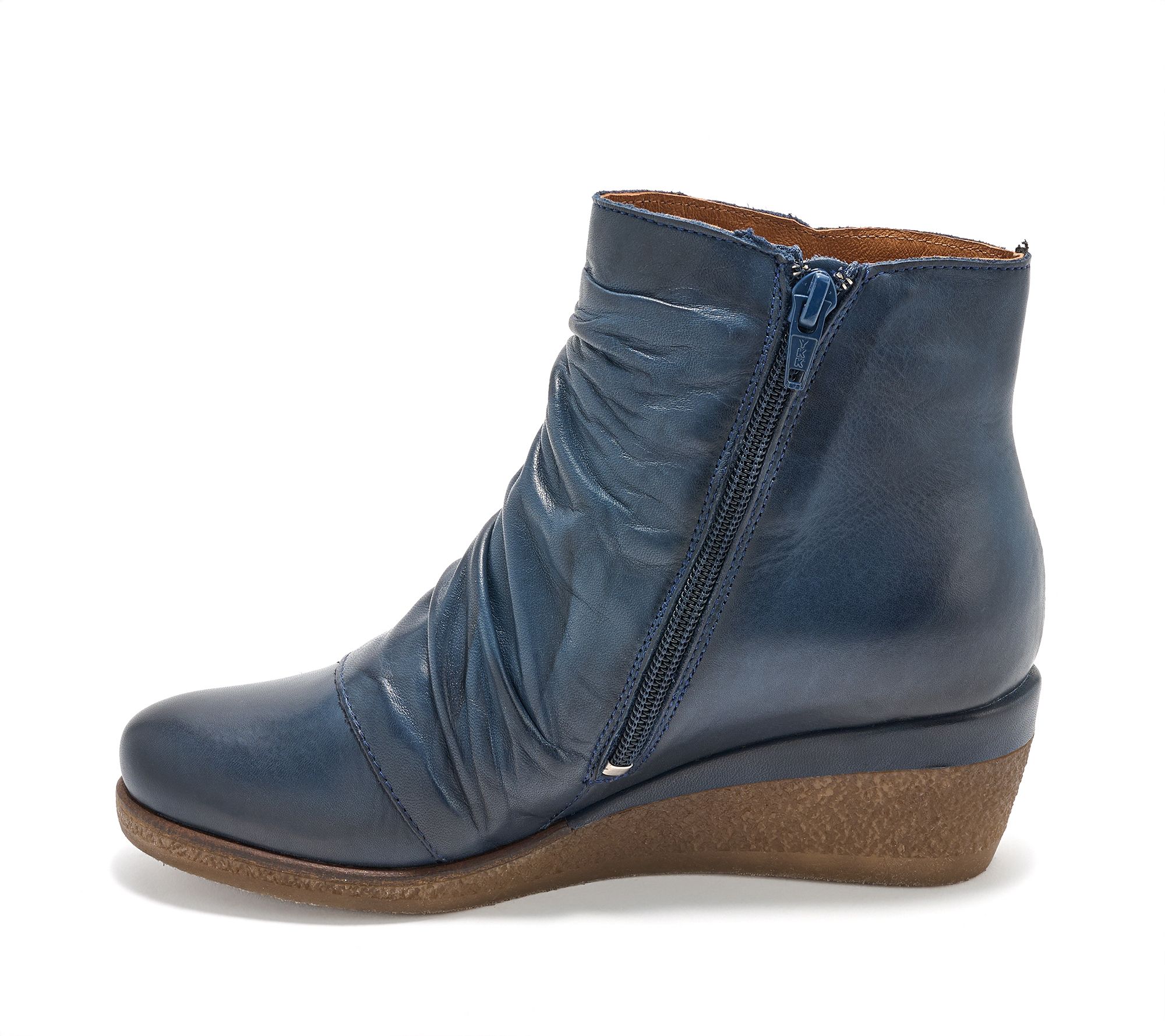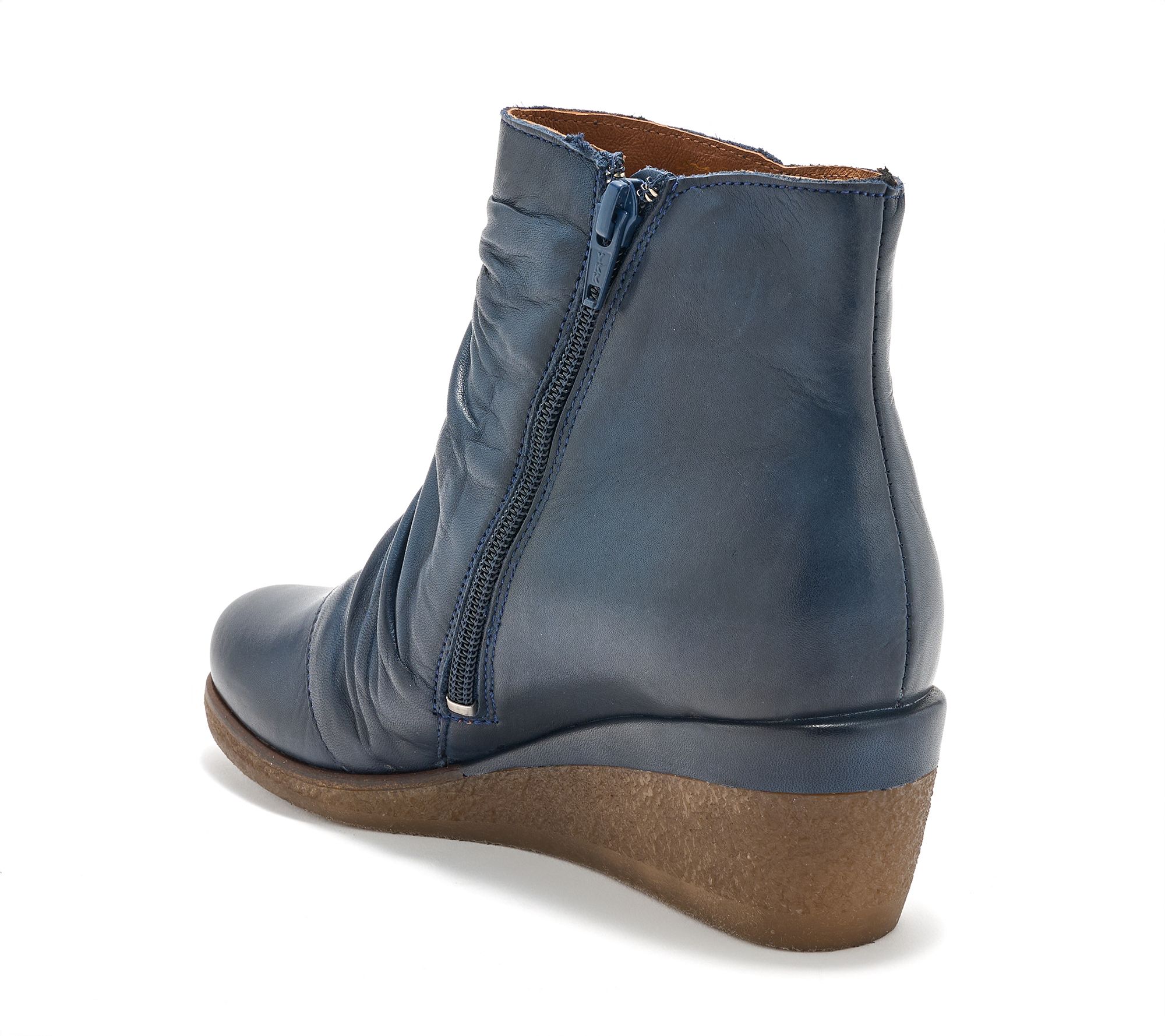 Step up your shoe game with these ruched leather wedge boots, thoughtfully designed for both style and comfort. The soft European leather and cushioned footbed make them a great pick for busy days when you need all-day wear, while an inner zipper makes dressing quick and simple. Turn errands or casual outings into moments of effortless confidence. From Miz Mooz.