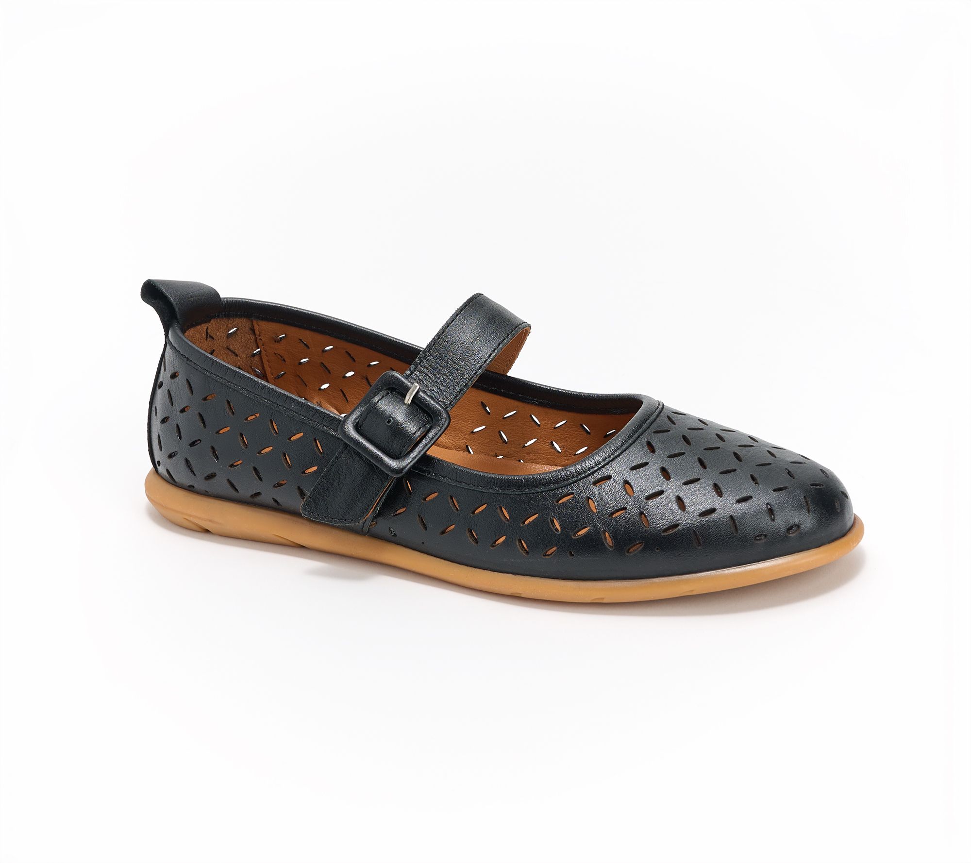 Embrace easy elegance with these perforated leather Mary Janes, designed to carry you through full days at the office and lively weekends out. Soft European leather, an adjustable buckled ankle strap, and cushioned footbed deliver a comfortable, custom fit ideal for both dressy and casual looks. From Miz Mooz.