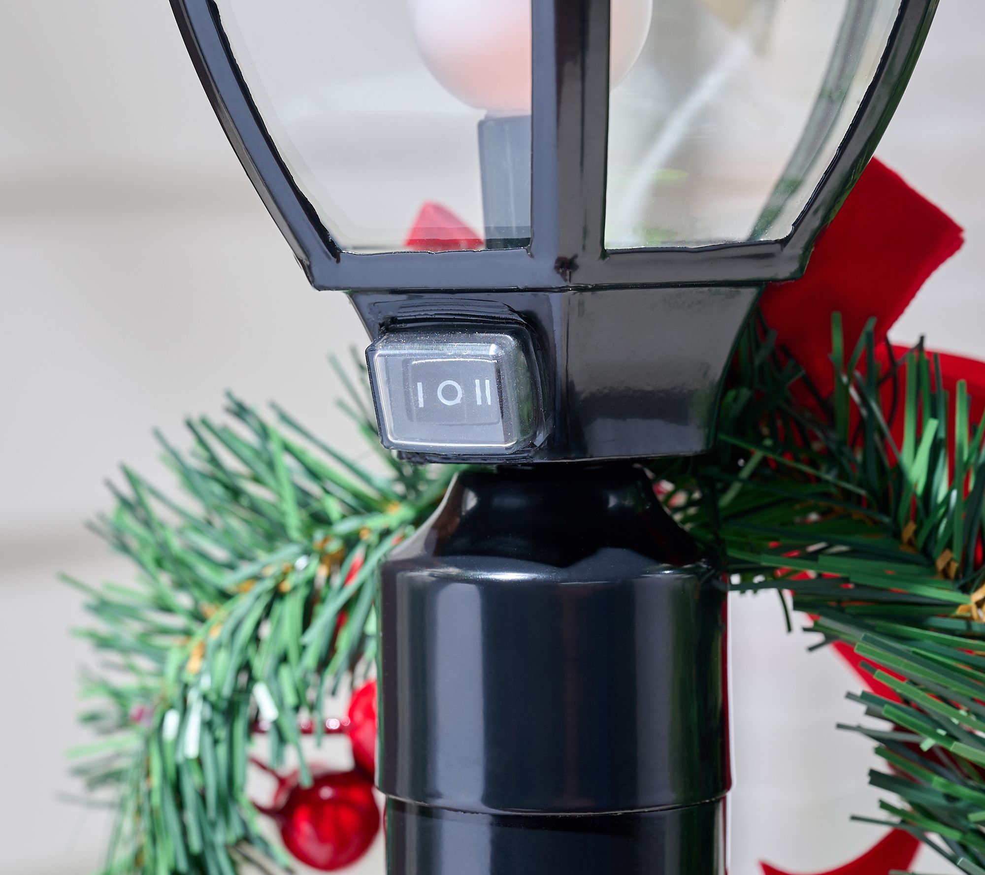 Holiday evenings are a little brighter when you place this decorative lamp post by the entryway, letting guests enjoy a welcoming glow as they arrive. The classic wreath, berries, and bold red bow create nostalgic charm, while the built-in timer makes it easy to set and forget. Add this cheerful accent to your indoor spaces for festive flair all season long. From Mr. Christmas.
