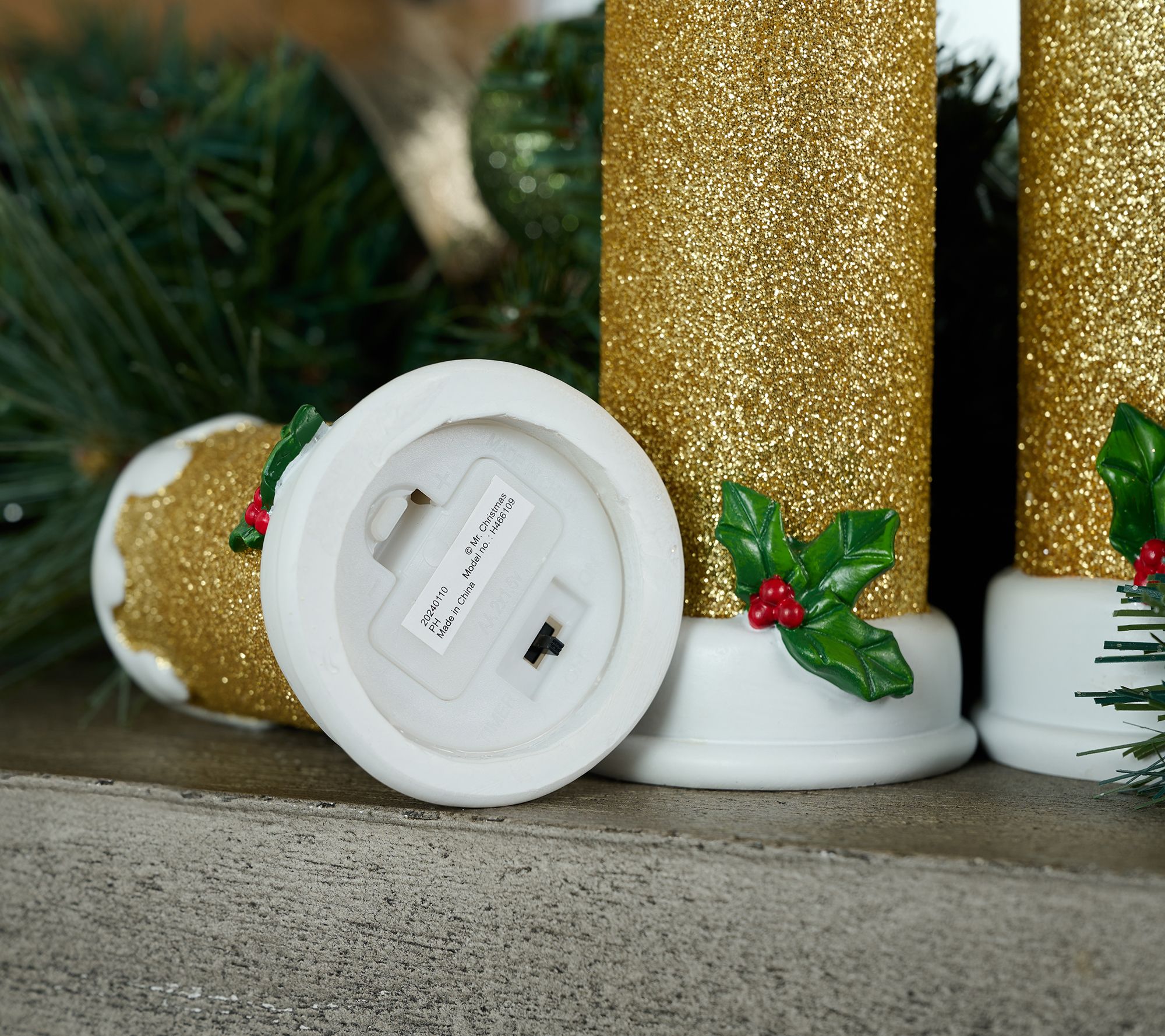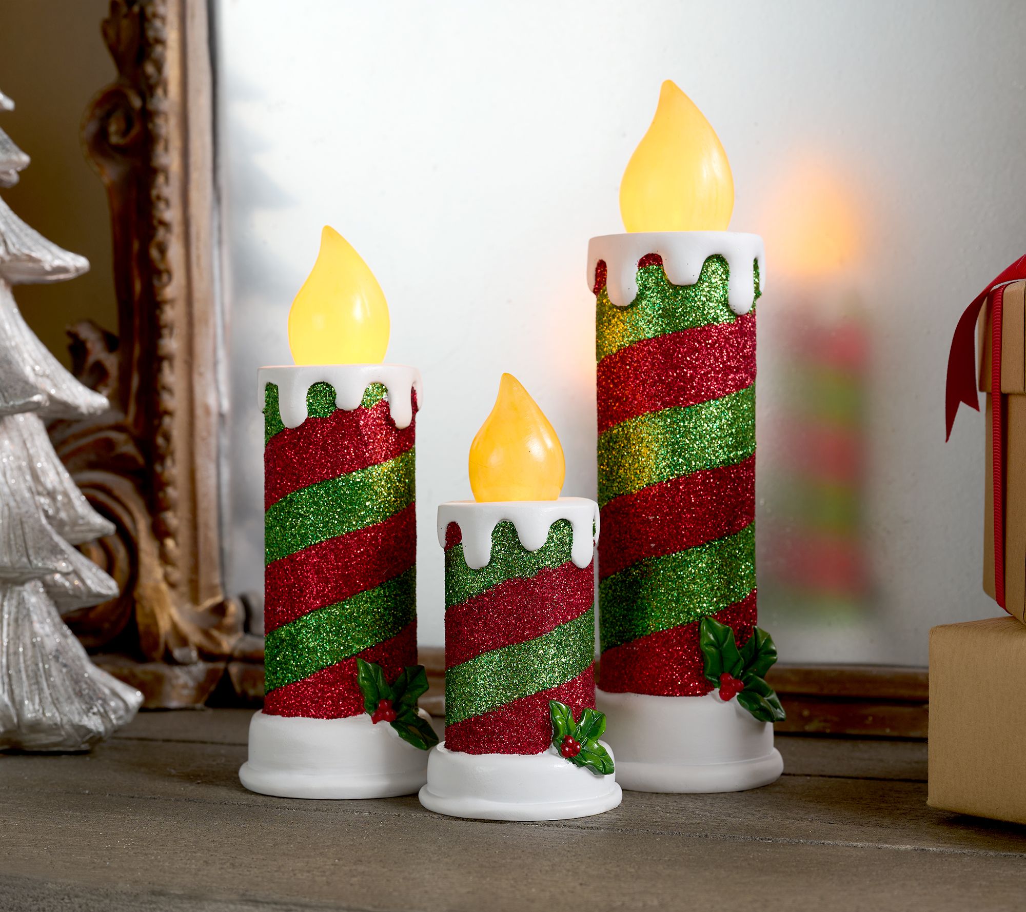Give your home a touch of nostalgic holiday charm with this set of three flameless candles. A convenient timer function means you can set them so they turn on and off at the same time every evening. From Mr. Christmas.
