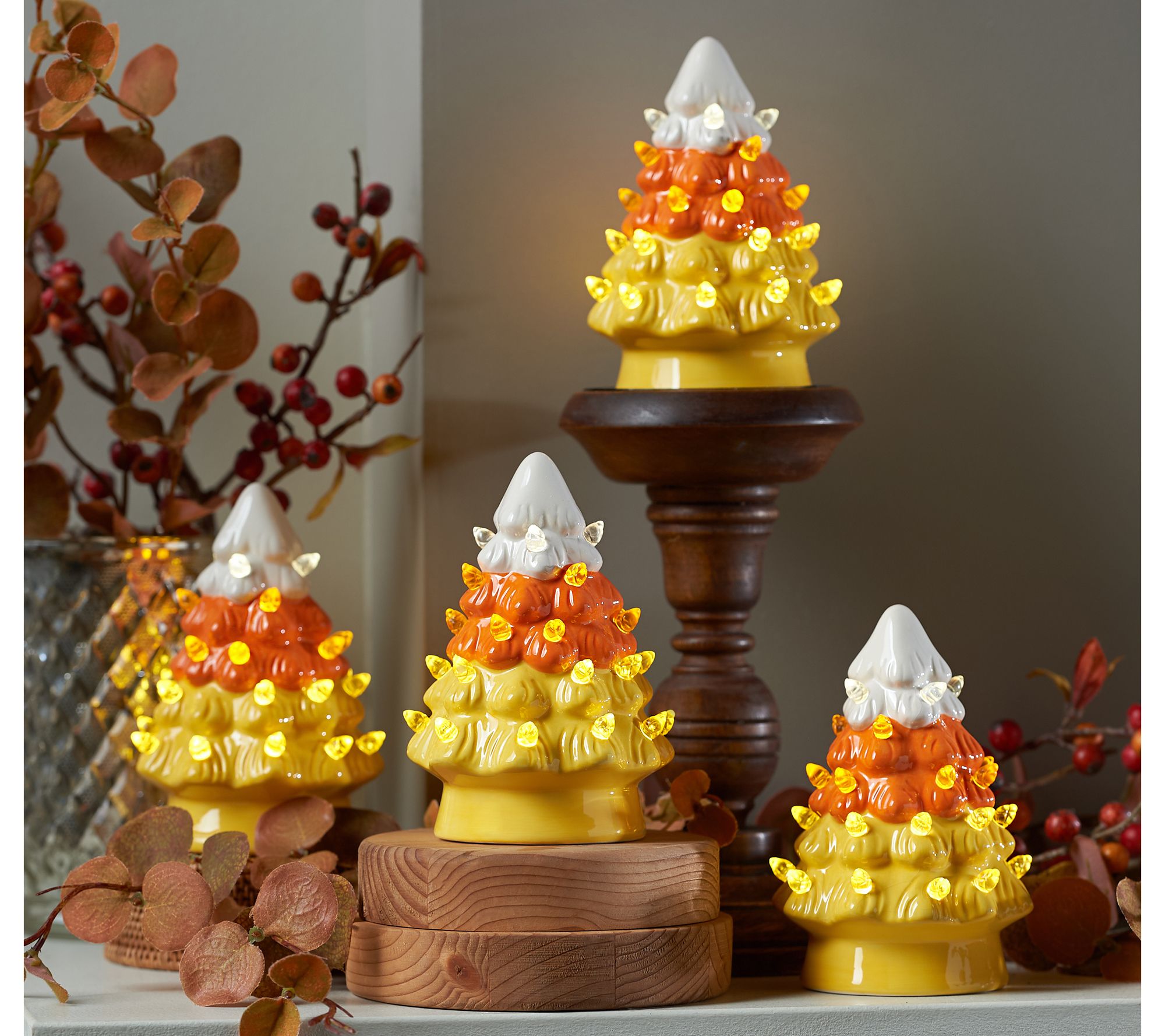 "As Is" Mr. Halloween Set of 4 Mini Candy Corn Nostalgic Trees