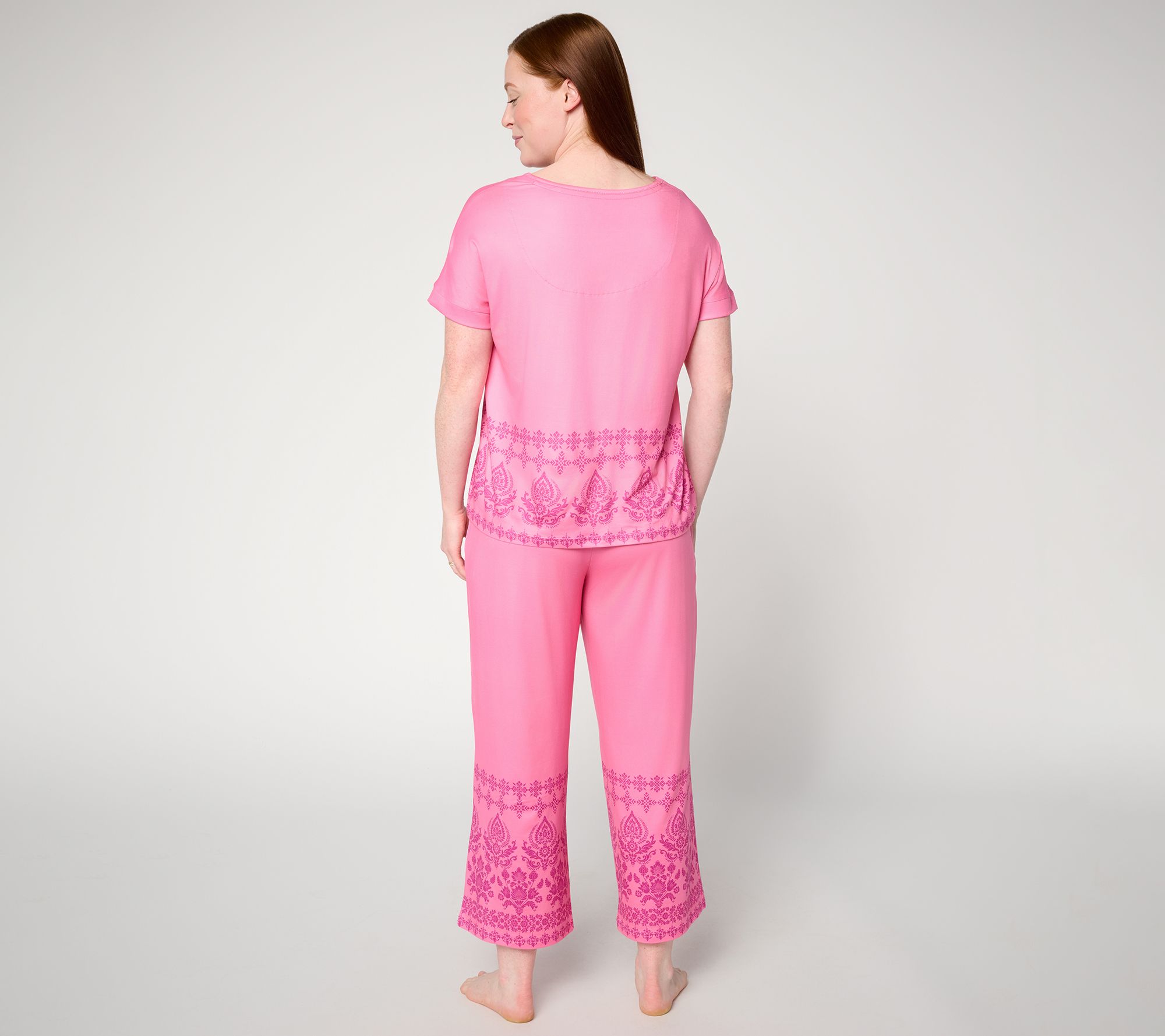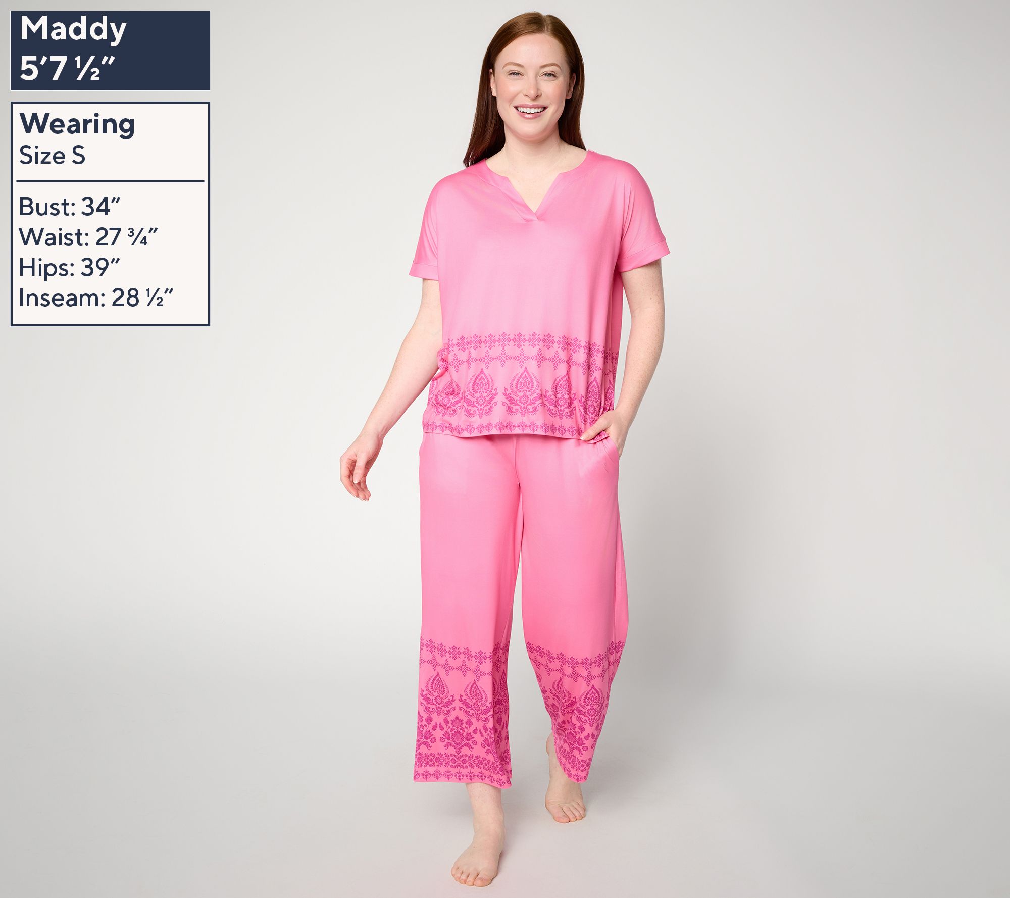 Slow down and savor your downtime in this PJ set, featuring a relaxed tee and cropped pants created for easy comfort. Lightweight enough for warm nights and versatile for all-day lounging, Cloud Knit brings laid-back style to everything from a quiet morning coffee to winding down in the evening. From MUK LUKS.
