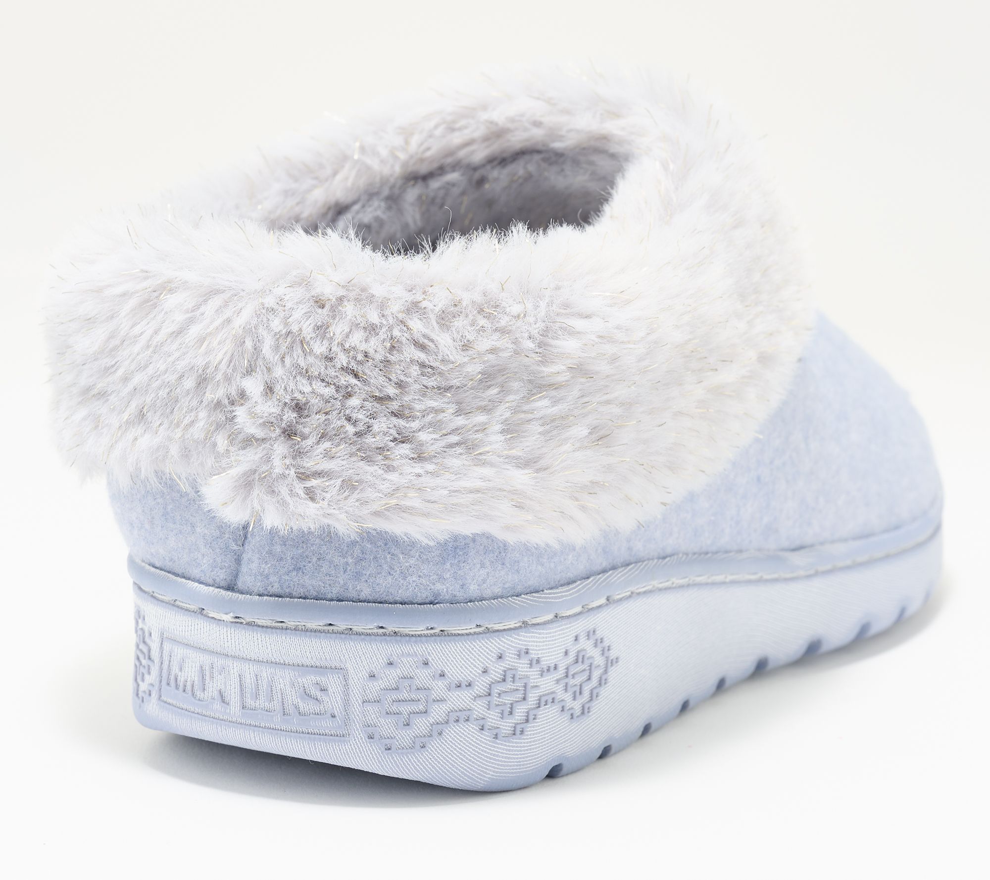 • Heathered knit upper, faux-fur trim with a hint of sparkle