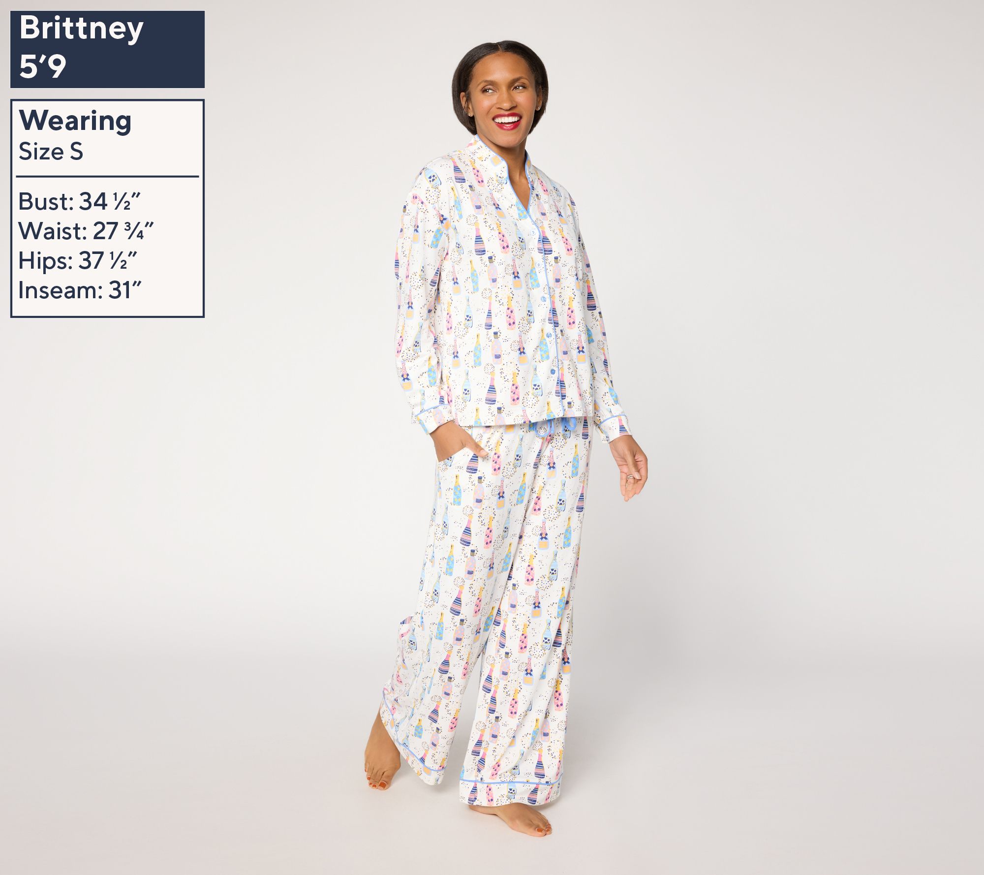 Sink into nighttime comfort (or enjoy a peaceful morning) in this winter pajama set, thoughtfully constructed with a notch-collar top and roomy wide-leg pants. The Dream Cloud fabric stretches and moves with you, while the elastic waistband and drawstring help keep things comfy, whether winding down or savoring a long weekend of nothing much. From MUK LUKS.