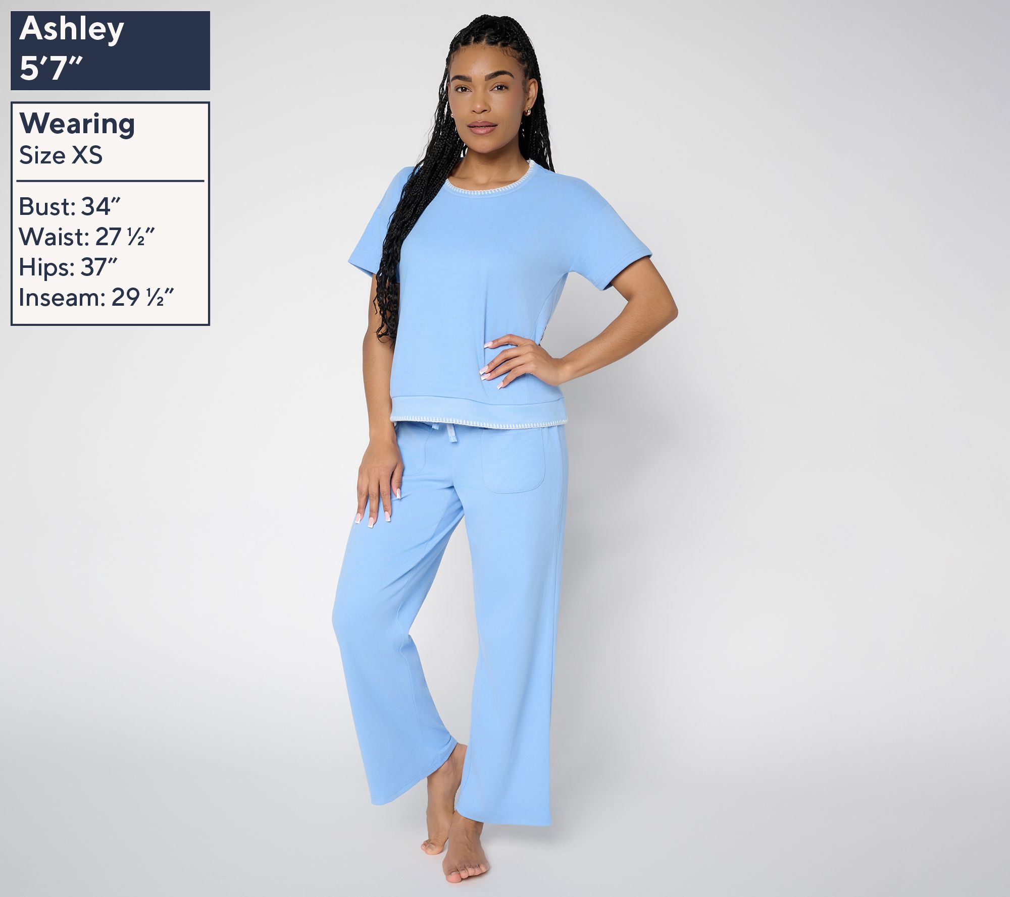 Settle in for movie marathons or leisurely mornings in this coziest-ever lounge set, featuring a drop-shoulder tee and straight-leg pants. Soft knit fabric with a beautiful balance of stretch and fresh whipstitch detailing brings elevated style to relaxation, while the elastic waistband creates all-day comfort for binge-watching or afternoon catnaps. From MUK LUKS.