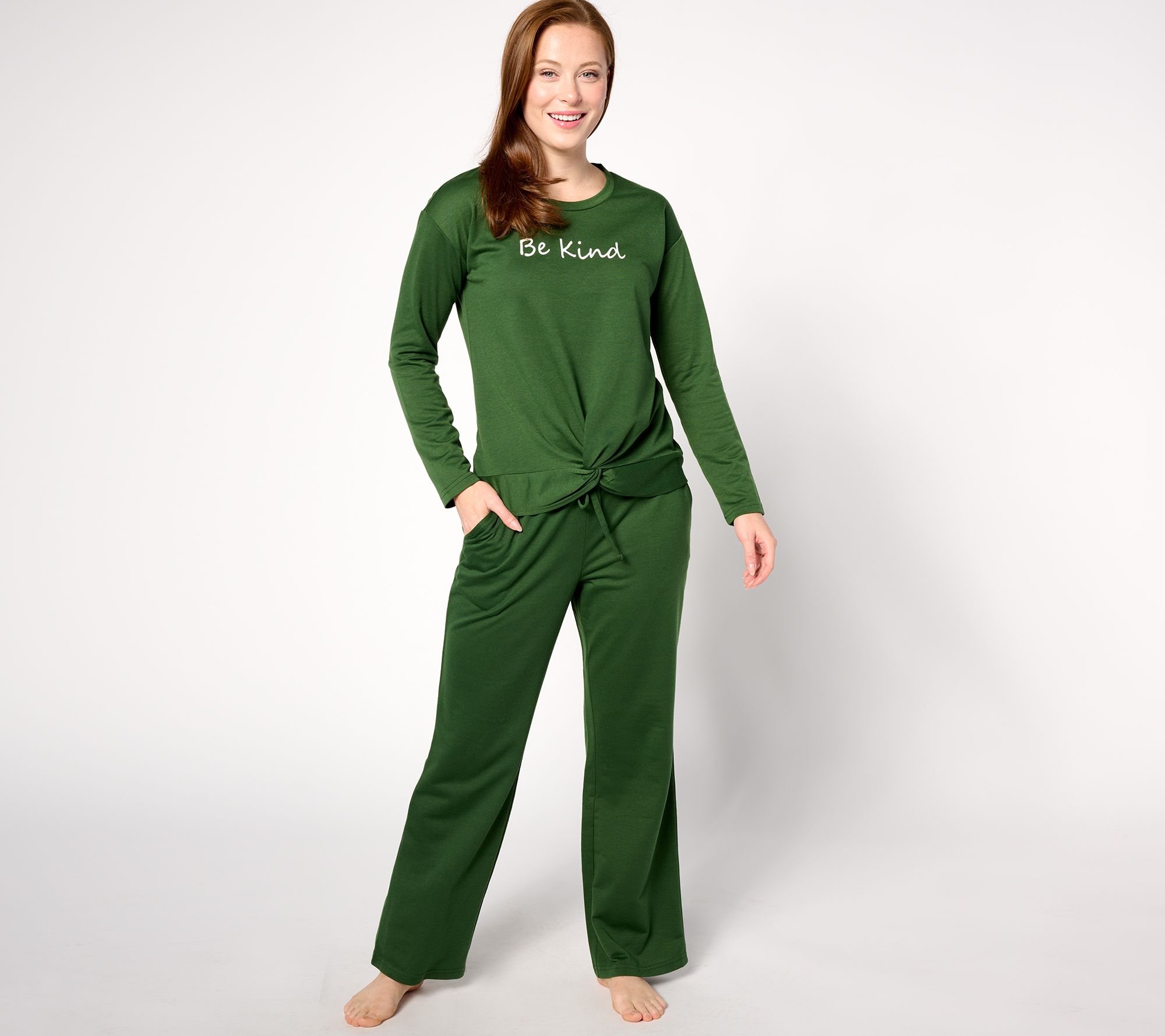Self-care starter kit. With a message of positivity, this French terry lounge set gives you a lift quicker than that first cup of joe. From MUK LUKS.