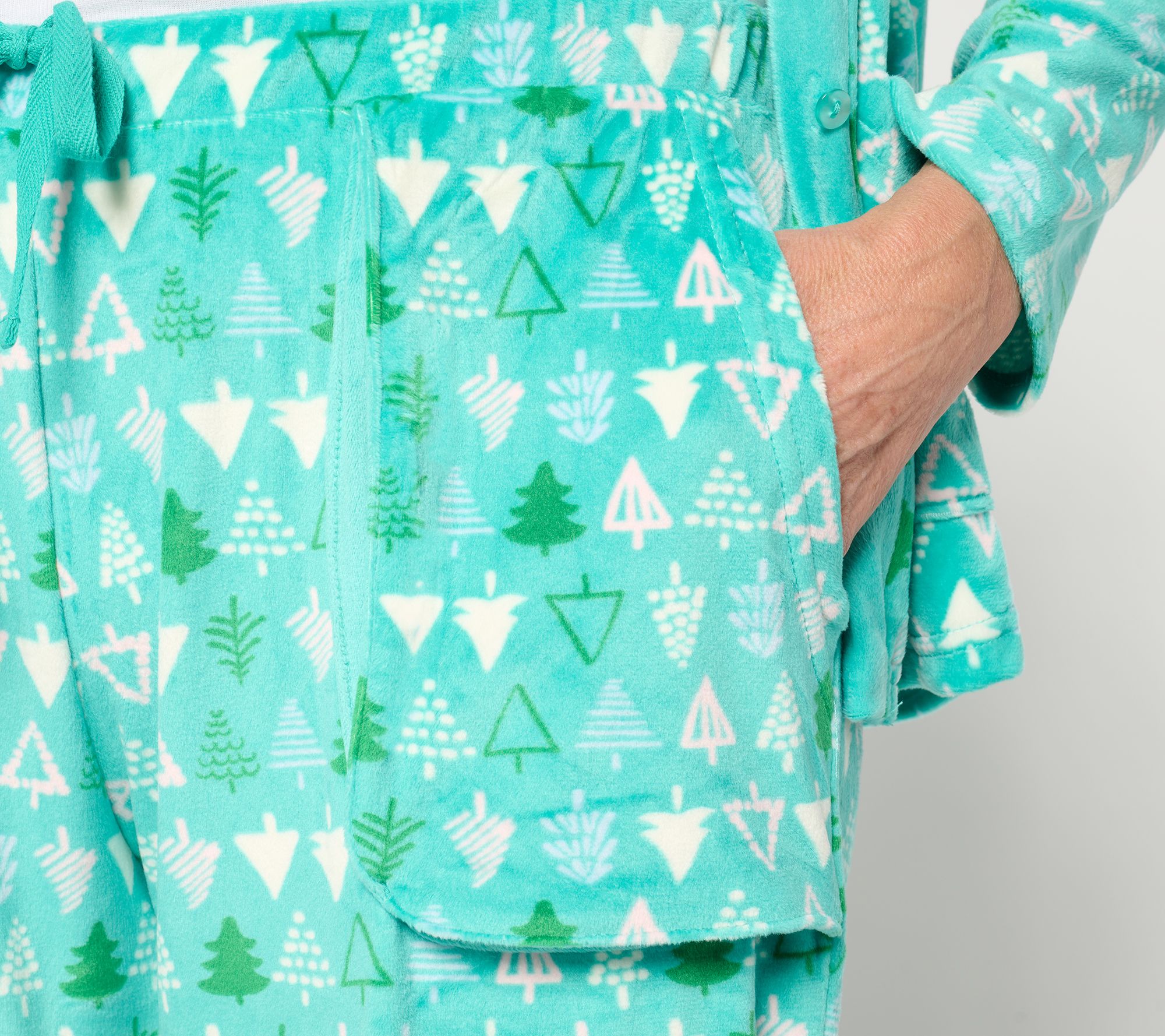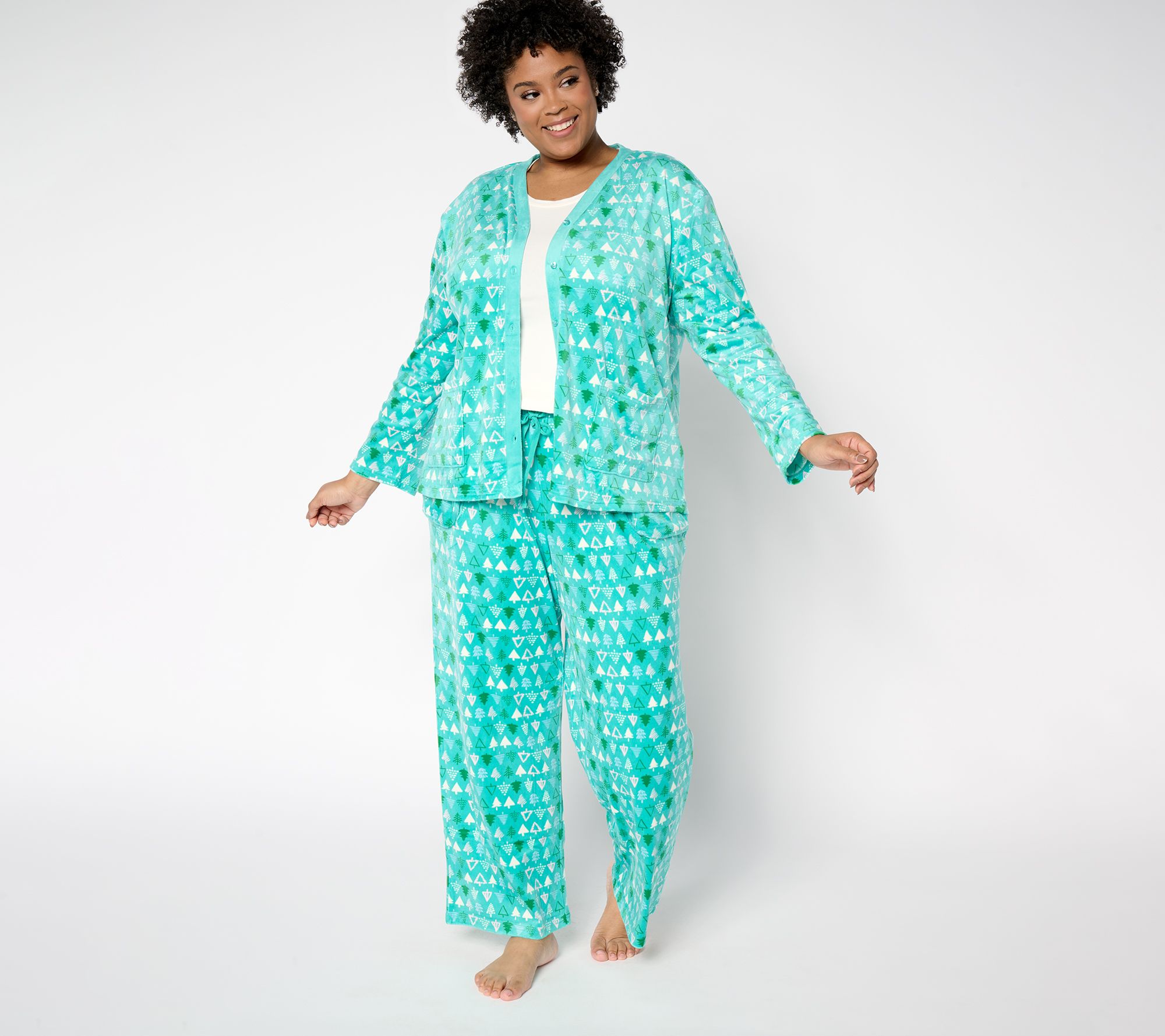 Escape into cozy comfort with the MUK LUKS velour bed jacket and pant pajama set. Enjoy the soft, plush feel of the velour knit while lounging at home or enjoying your morning coffee. The button-front jacket exudes an elegant yet relaxed style, and the easy pull-on pants feature convenient pockets. From MUK LUKS.