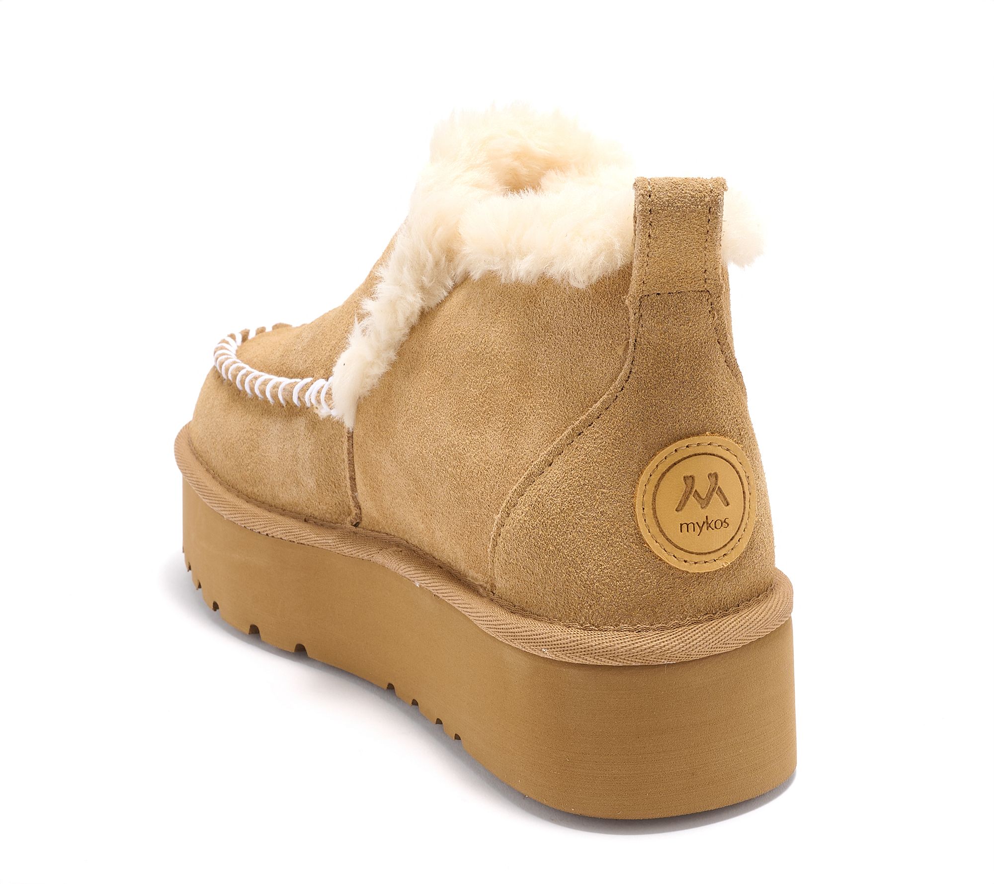 Blustery days and chilly evenings are no match for these suede platform winter boots, featuring a plush faux-fur lining for unbeatable warmth. Whether you're strolling city streets or enjoying a winter getaway, the foam footbed offers cozy comfort every step of the way. From Mykos.