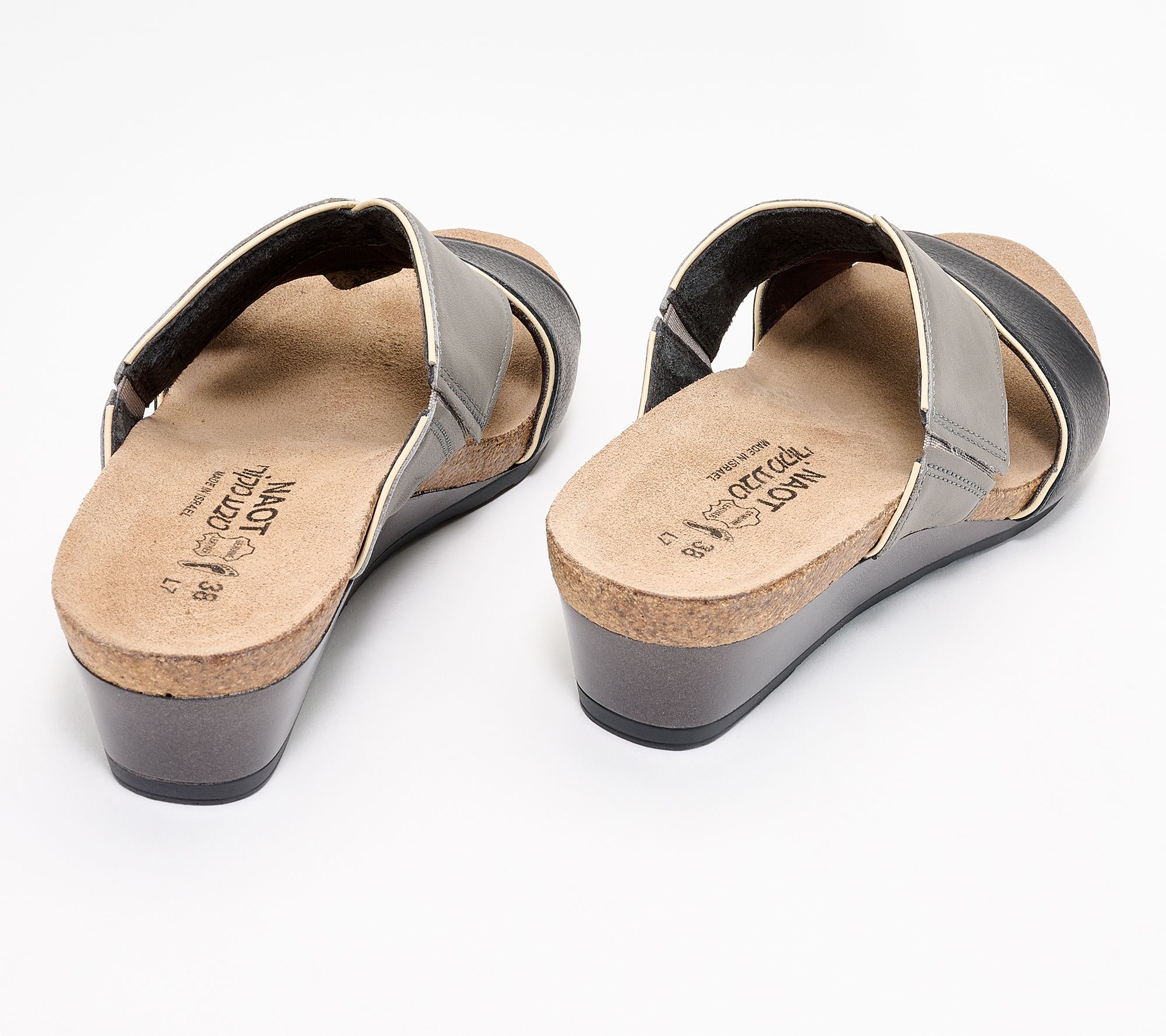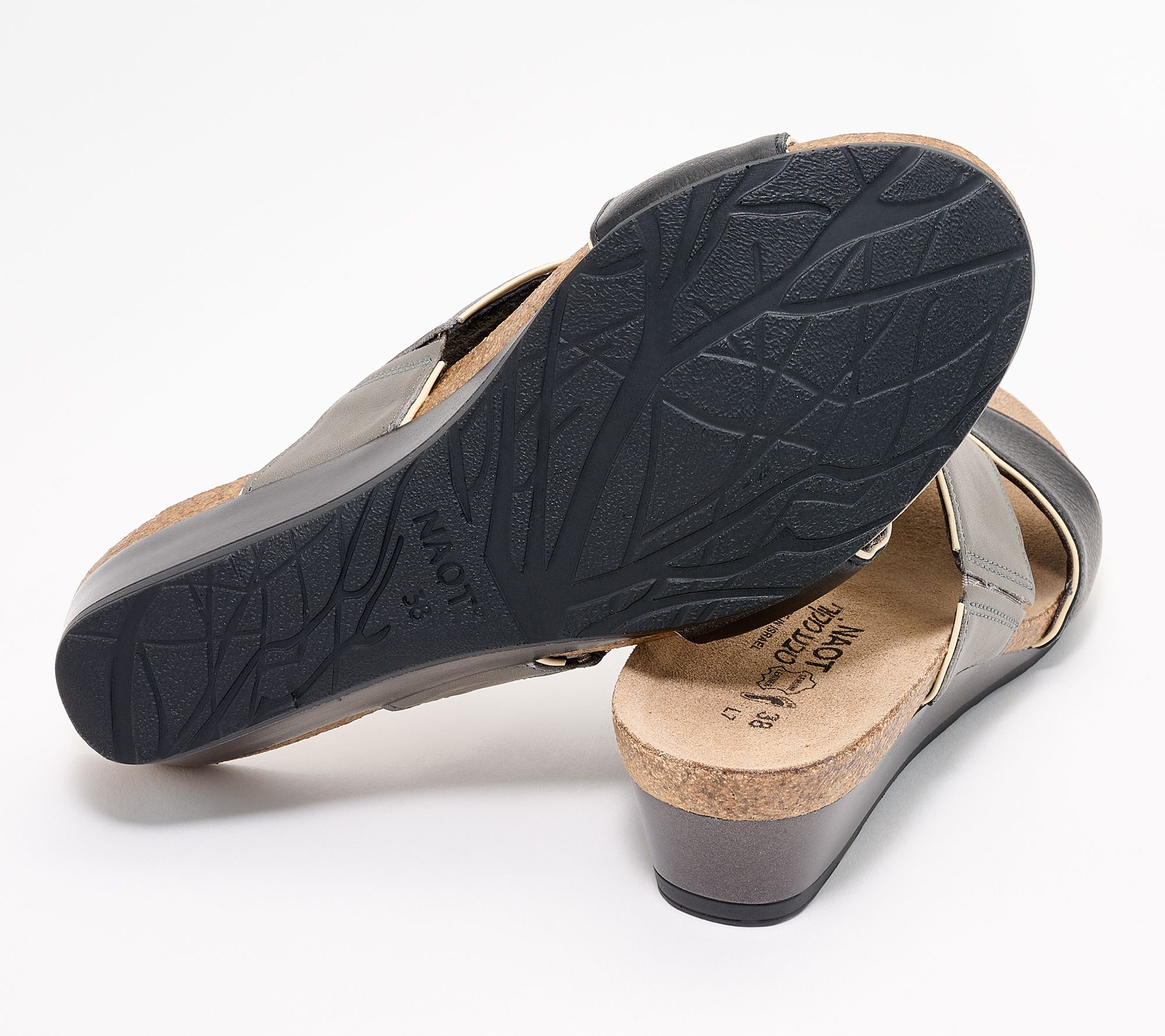 "As Is" Naot Leather Wedge Slide Sandals- Tiara