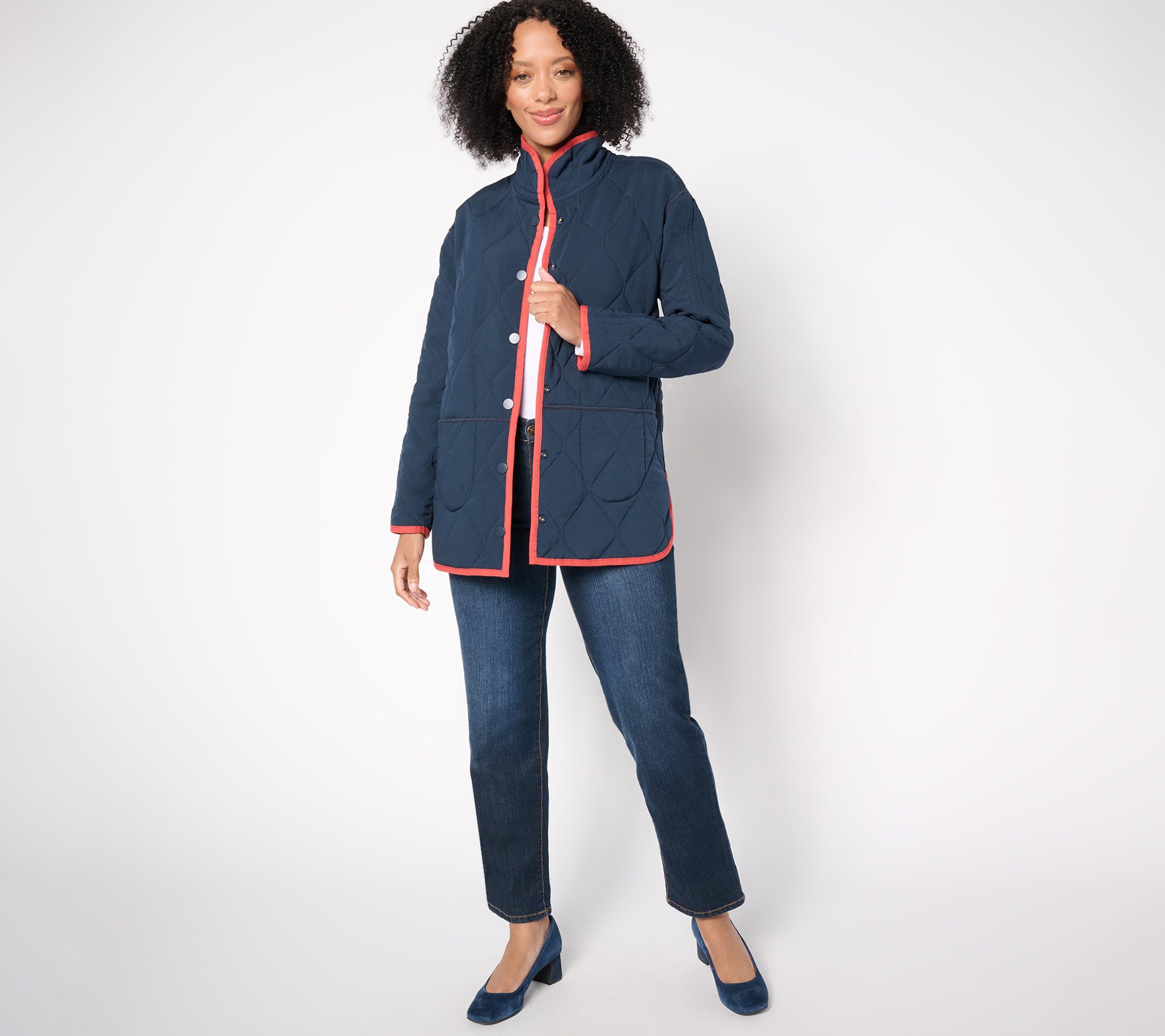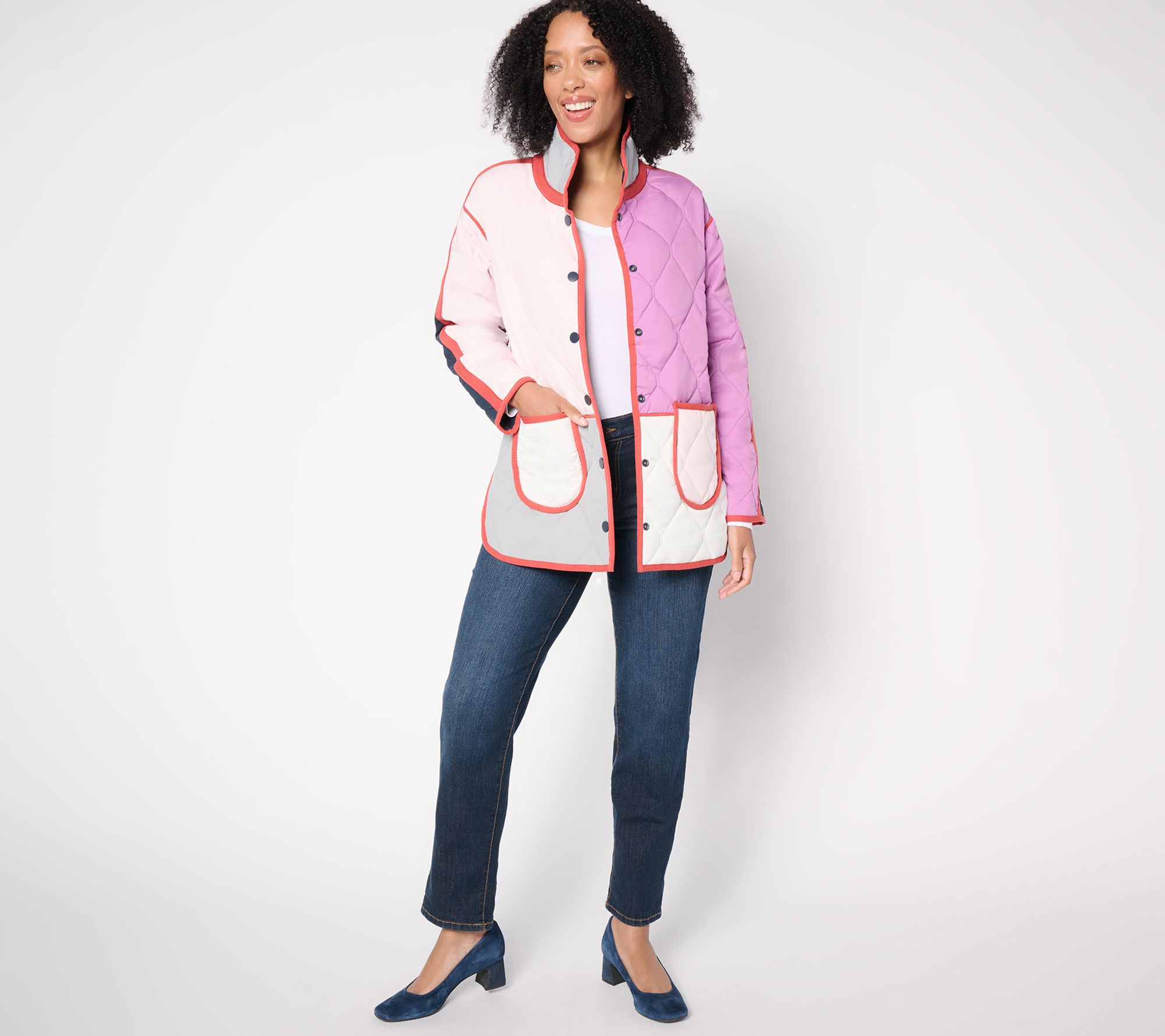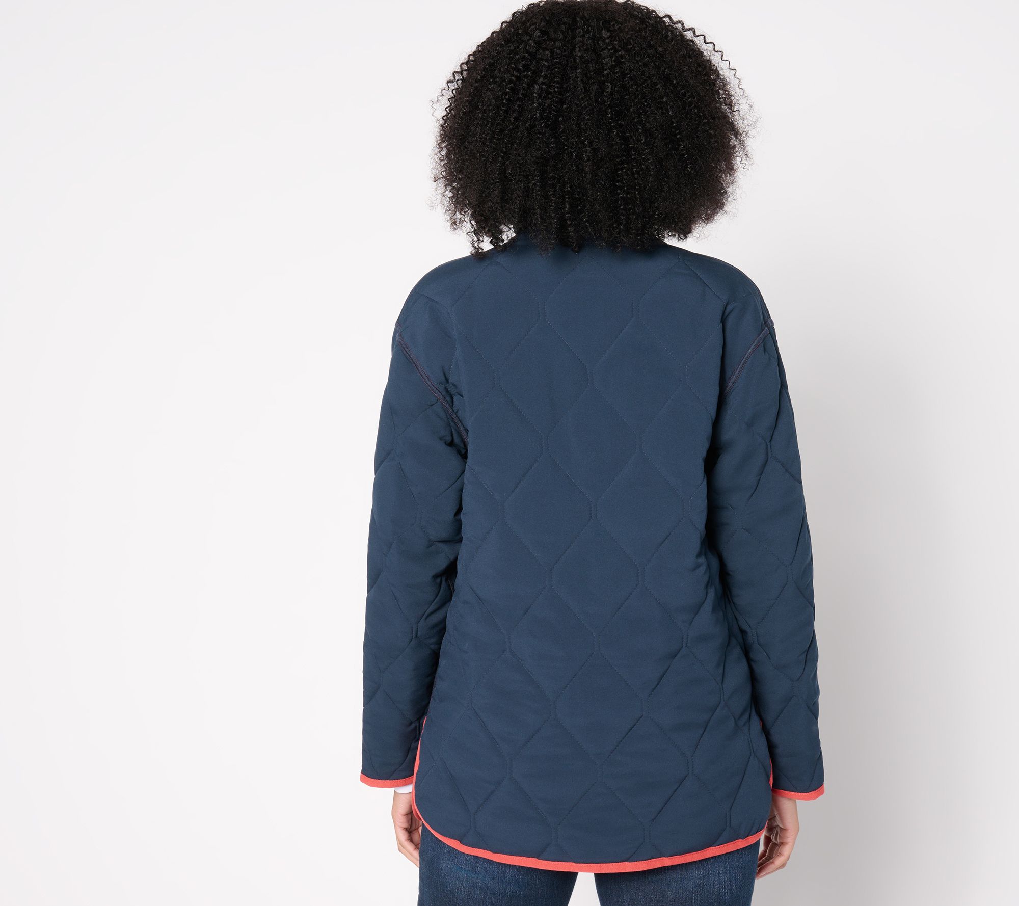 Mix it up! Elevate your outerwear game with this chic reversible coat. The versatile piece features a quilted puffer design and snap closure, offering both style and functionality. Perfect for chilly days, it’s midweight and easy to wear, with slits that fall slightly below the hip. From NIC+ZOE.