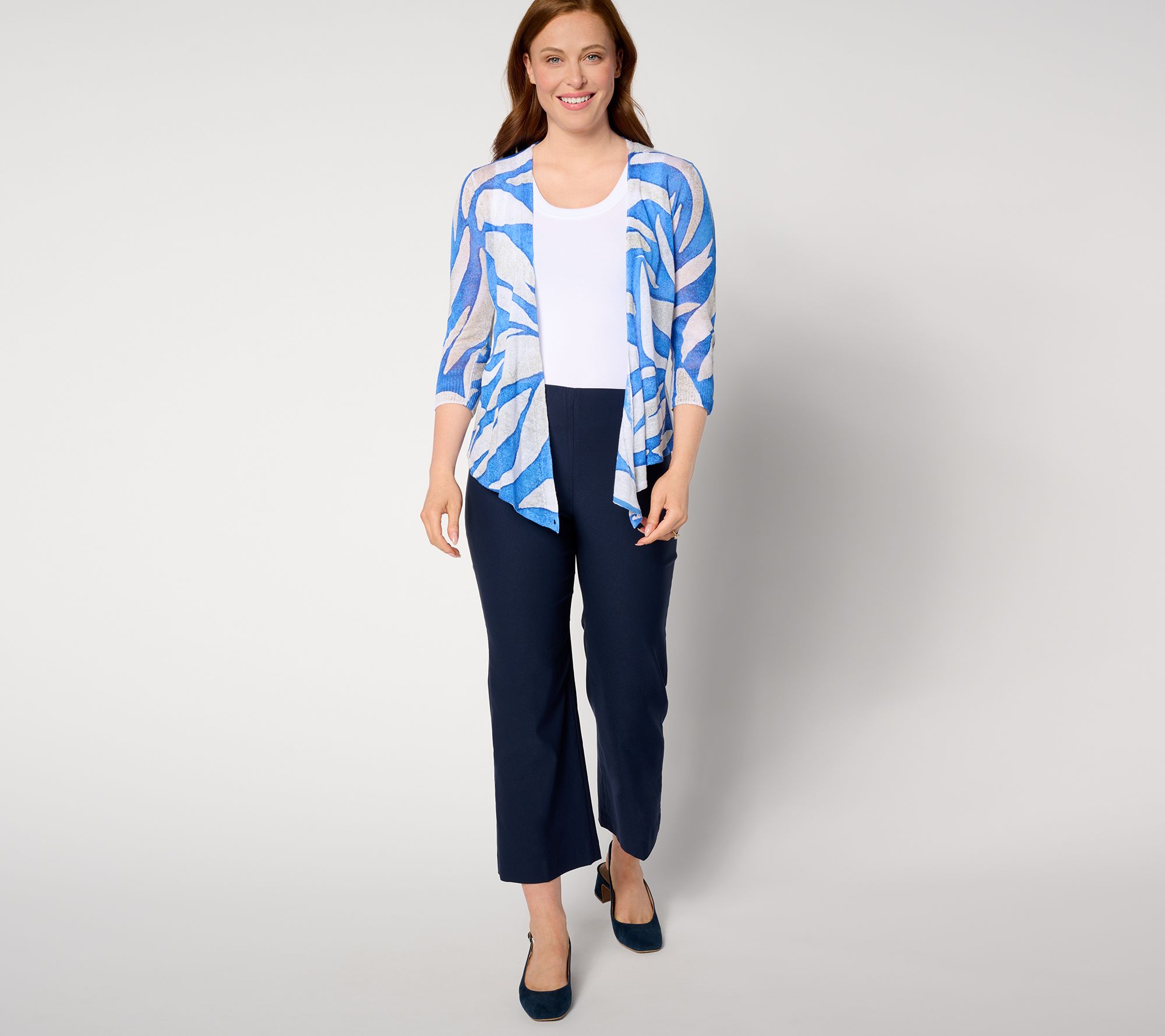A wonderful everyday pant, these pull-on trousers have no fussy buttons or zippers for easy wear. With a cropped length and wide-leg silhouette, they offer a flattering fit that pairs well with pumps, ballet flats, and sandals alike. From NIC + ZOE.