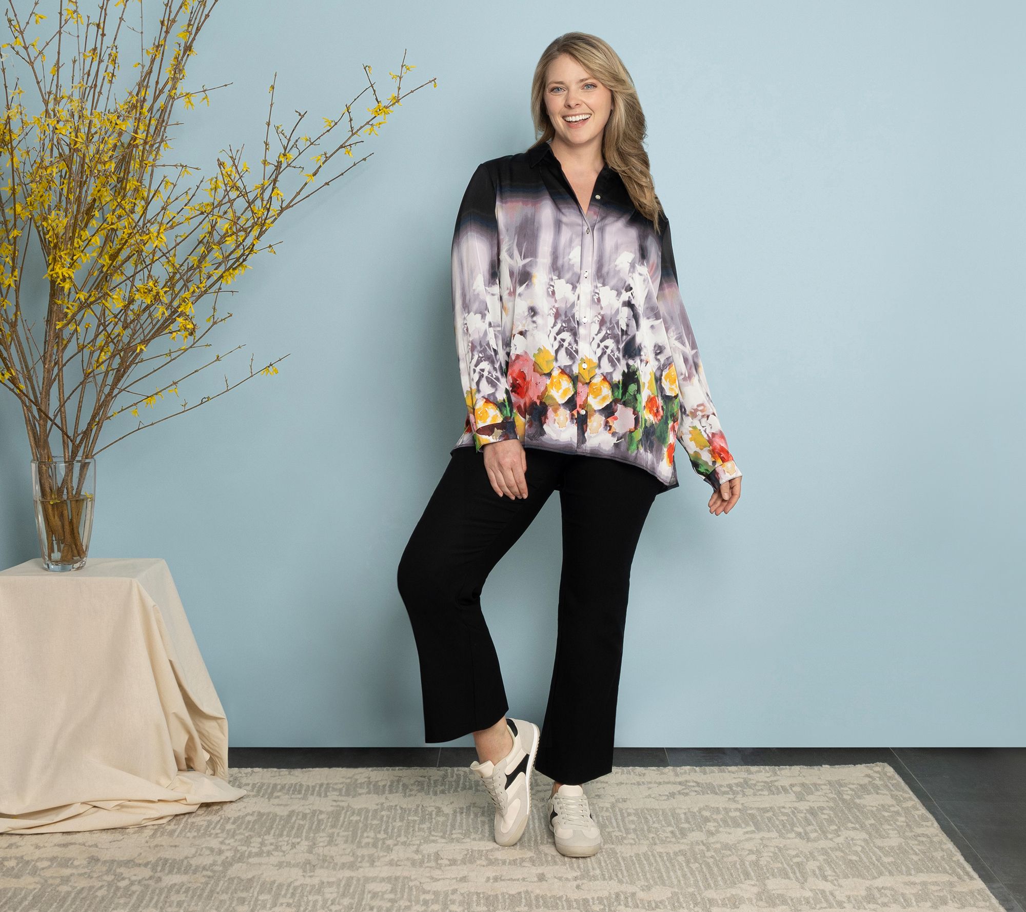 "As Is" nicole by Nicole Miller Regular Button Front BoyfriendBlouse