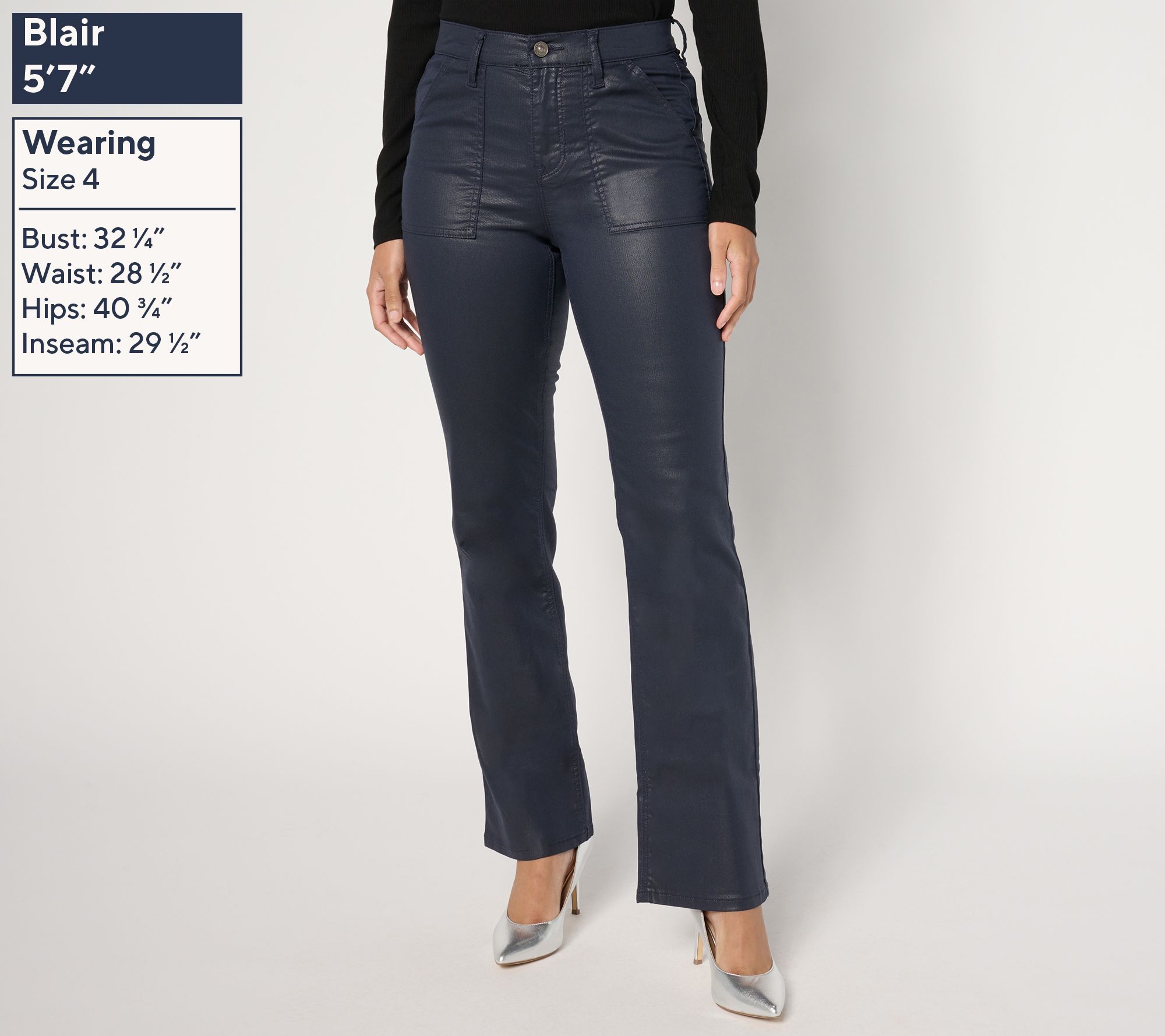 • Leg Shape: boot-cut leg; widens slightly from knee to leg opening
