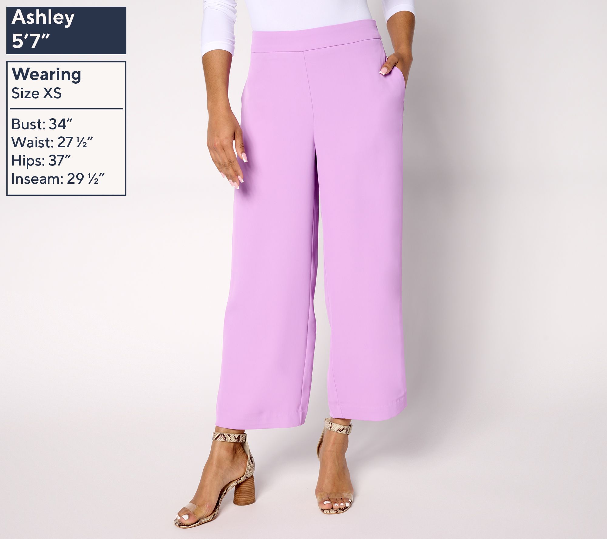• Features: cropped, pull-on style, flat-front elastic waistband, on-seam pockets