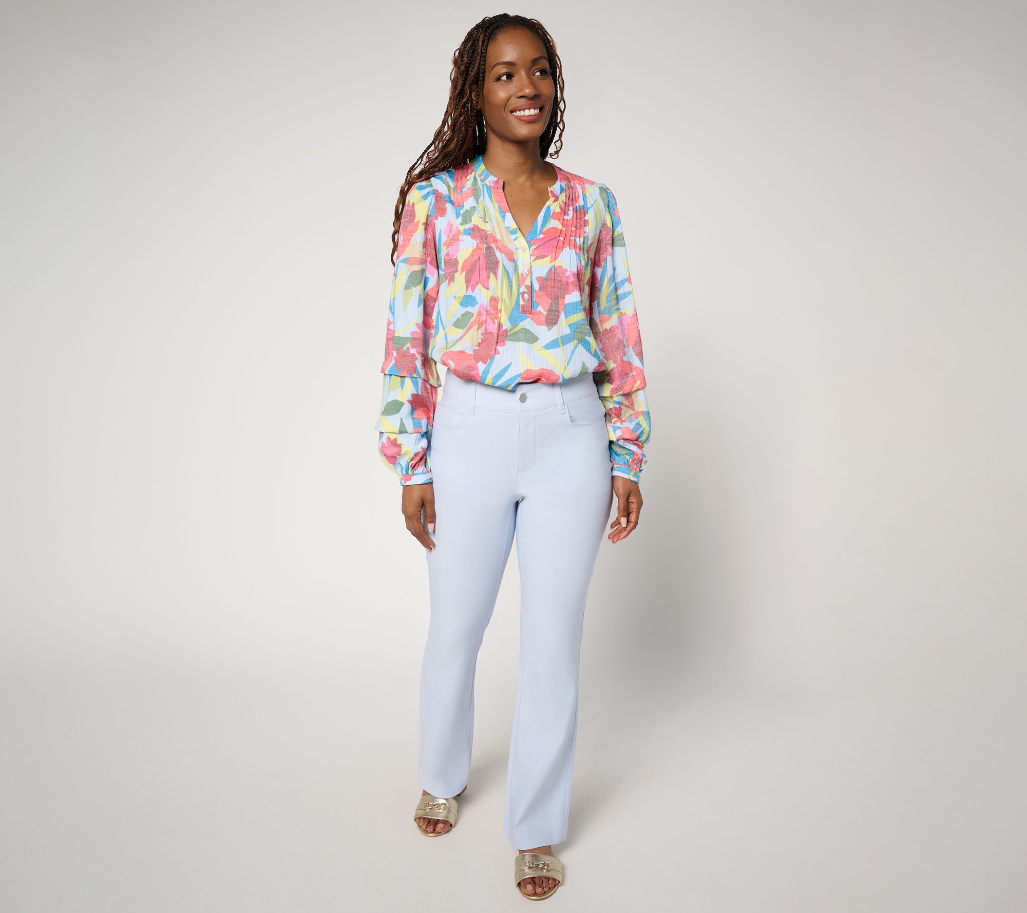 Instant (and versatile) classic! Whether you're dressing it up for the office or keeping it casual for a day out, these five-pocket trousers in stretch woven have you covered. Just as cute with a court sneaker as they are sandals and a polished pedi. From nicole by Nicole Miller.
