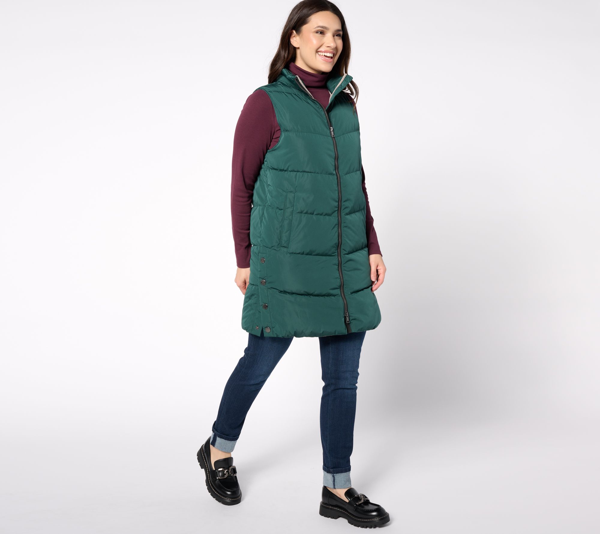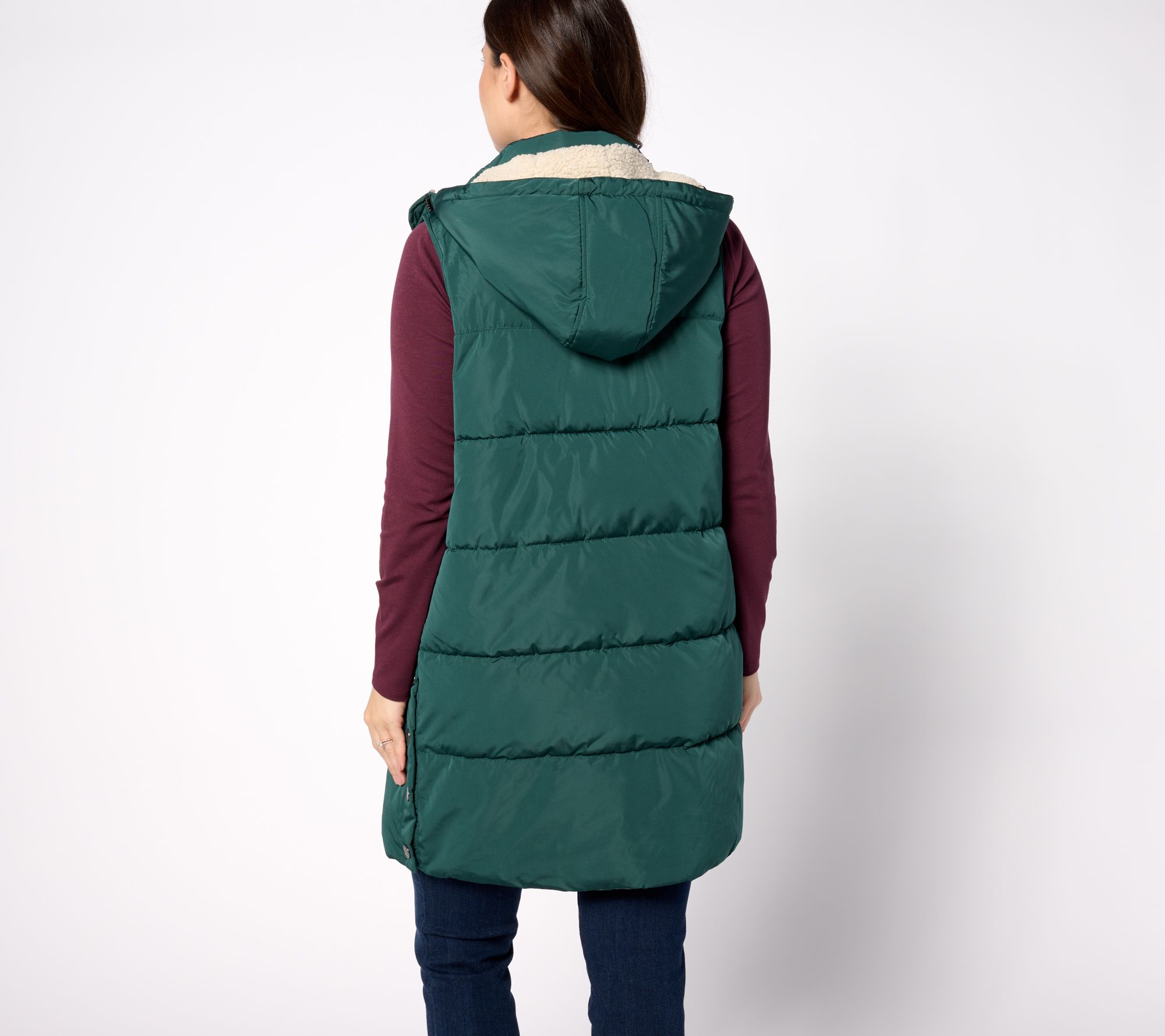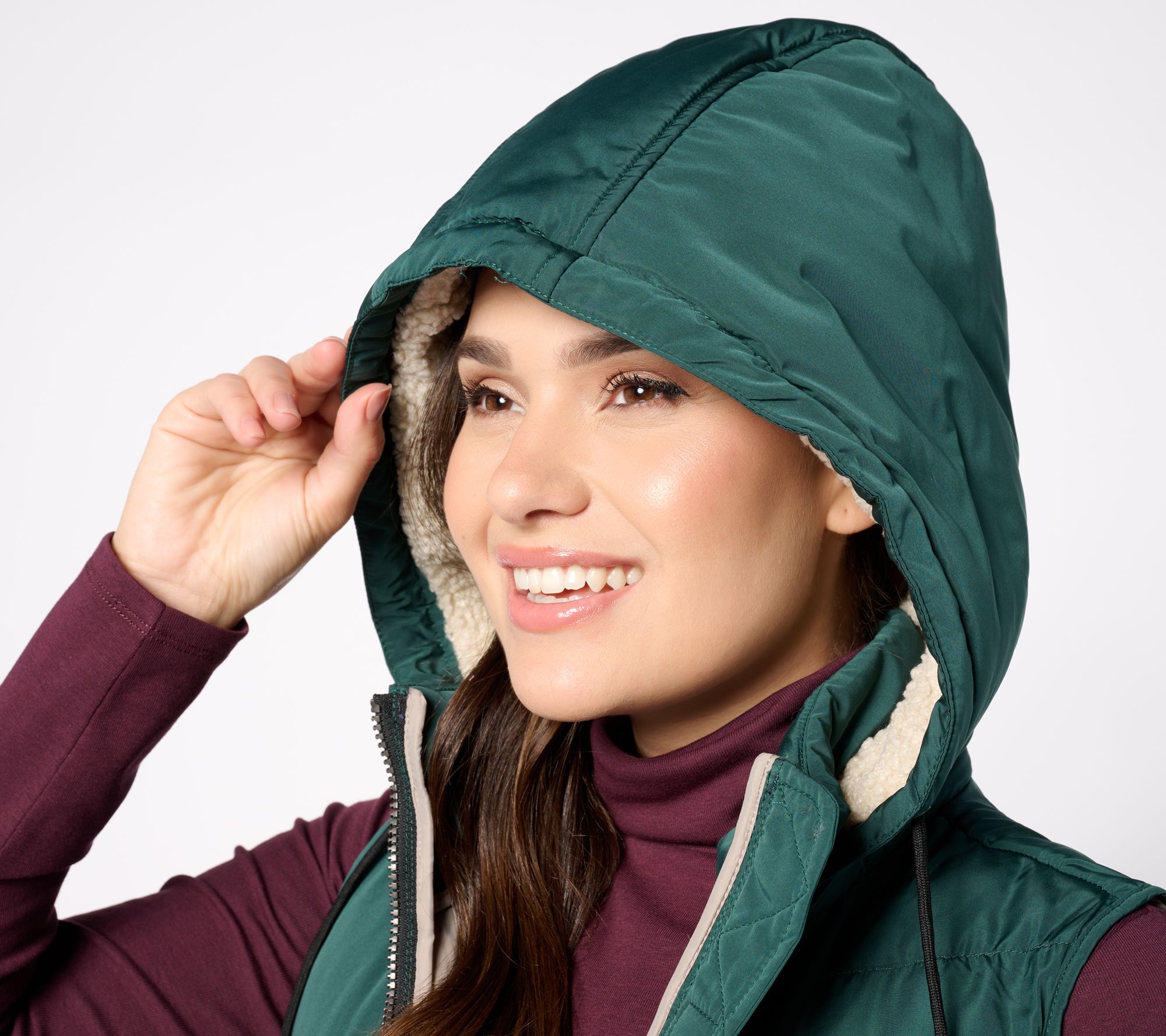 "As Is" Nuage Chevron Quilted Long Vest with Detachable Hood