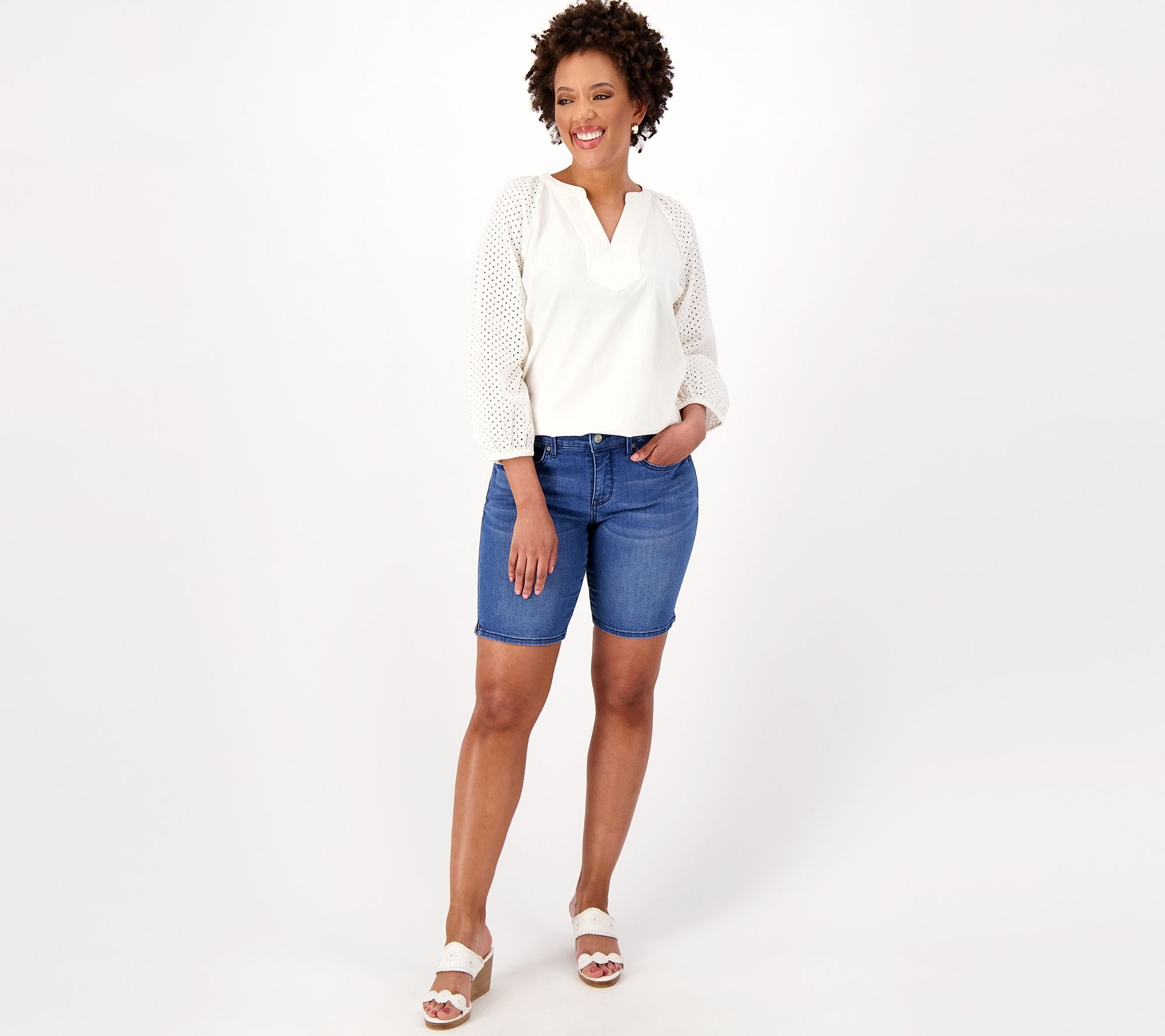 In a sea of summery essentials, this do-it-all denim staple from NYDJ is sure to be on your short list. Built with a more contoured silhouette (plus plenty of stretch for flexibility) and buoyed with Lift-Tuck® tech, the Ella short is destined to be your kiddo camp dropoff (and pickup), picnic-in-the-park, swimsuit cover-up, gardening, and vacay-bound go-to that smooths and shapes in all the right places. Bottom line? You'll wonder how you ever got through summer without them. From NYDJ.