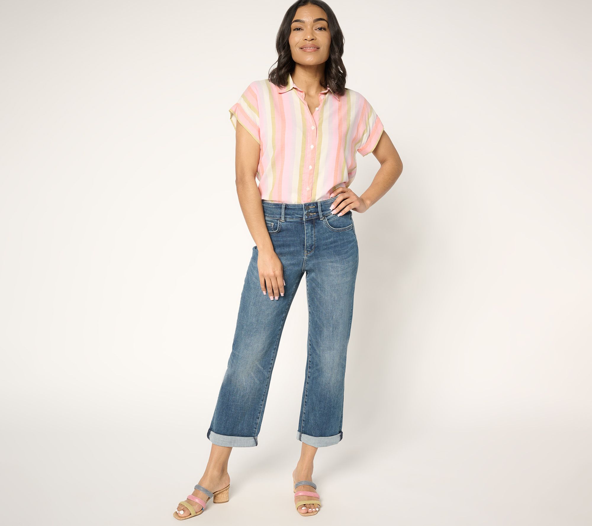 Following denim trends doesn't require a personal stylist's pick, just Lift Tuck® technology! NYDJ's slimming panel -- with a crisscross design to shape and support your curves (and edges) -- helps the seen-everywhere straight-leg, cropped style work beautifully, whatever your body type. From NYDJ.