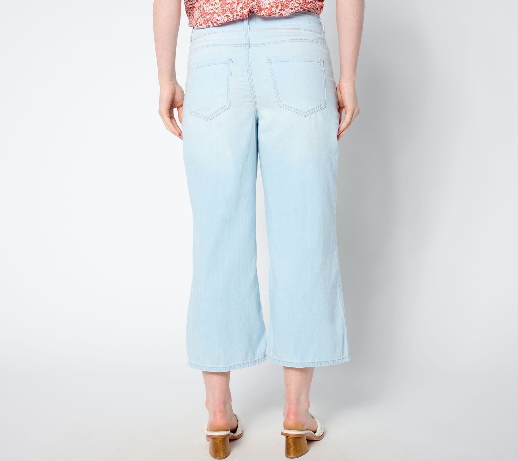 A trend-right look for a day in the city or brunch with your BFF, these high-rise wide-leg denim capris (in 100% cotton!) also help shape you with the supportive front crisscross panel of NYDJ's Lift Tuck® technology. Front-tuck a top or go with a cropped jacket to show off your flattering silhouette. From NYDJ.