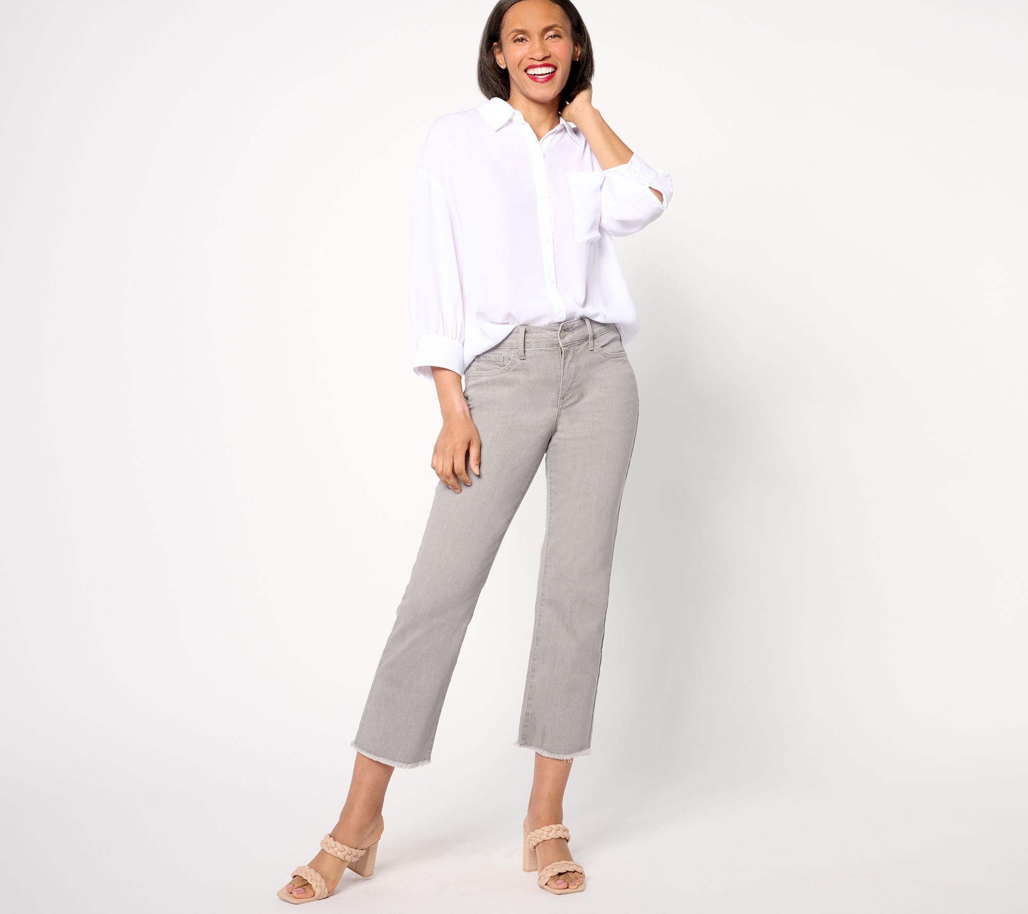 What's cool? The on-trend ankle-bearing length and boho-inspired frayed hems bring a free-spirited feel to a closet staple. What's even cooler? Breathable Cool Embrace fabric wicks away moisture to keep you drier, so you can dare to wear denim all spring/summer long. But don't tuck these away when temps start to drop -- your booties and shooties will look just as cool. From NYDJ.