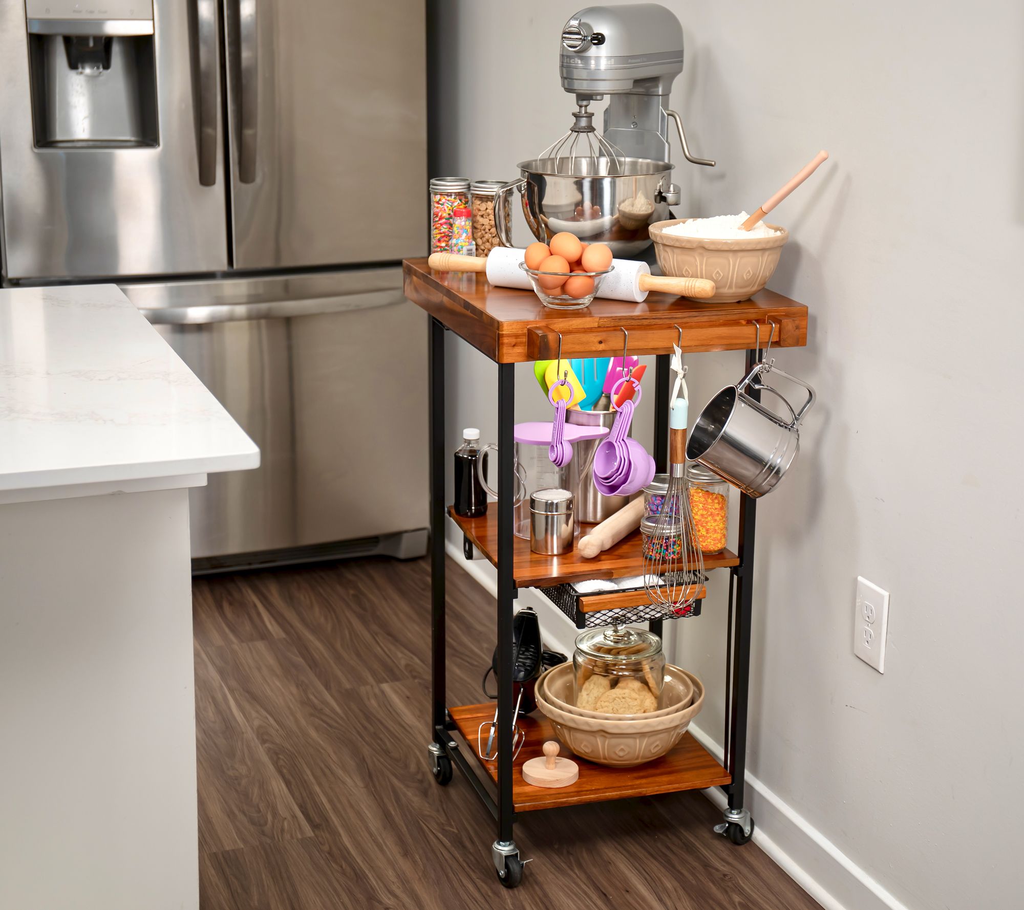 What does the ideal culinary companion do? It helps keep your prep space organized, provides additional storage for things like spices and snacks, de-clutters your countertops, and creates a mobile workstation you can move where you need it most. Basically, it's kitchen convenience in one stylish cart (did we mention the acacia wood design?).