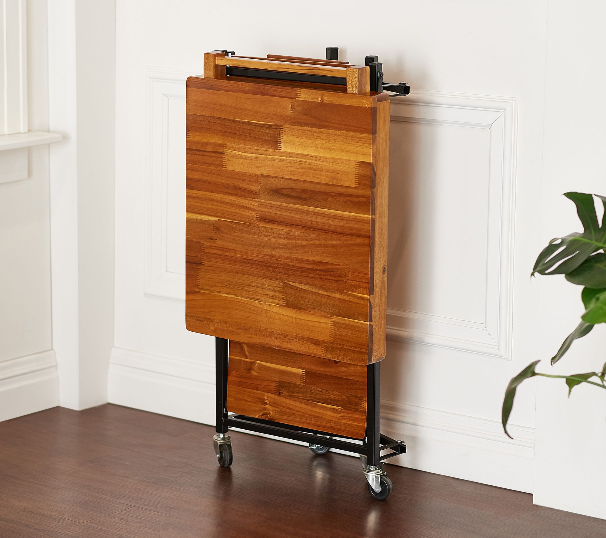 "As Is" Oasis Acacia wood Rectangular Folding Kitchen cart wq/ Drawer