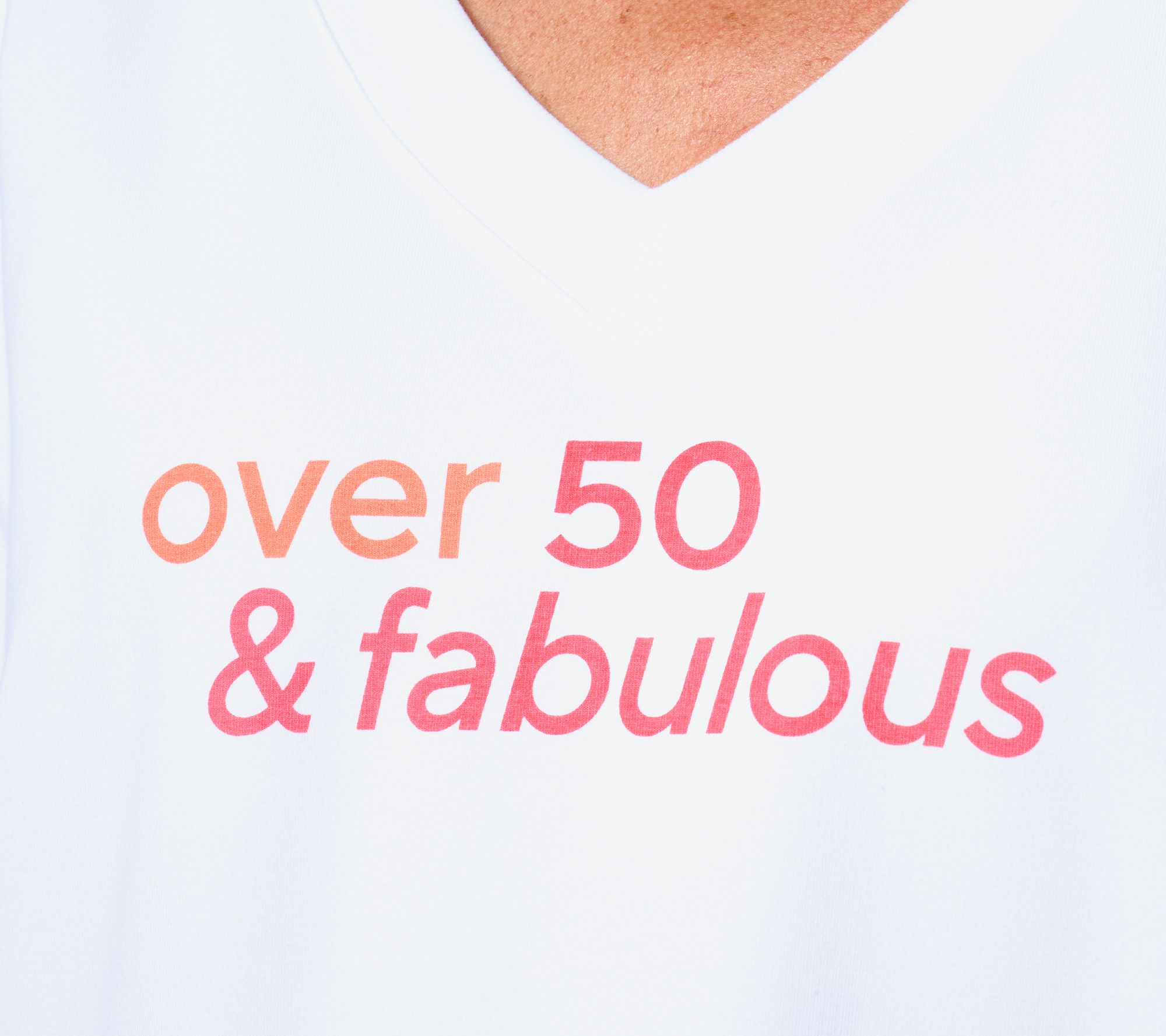 "As Is" Over 50 and Fabulous V-Neck Long- Sleeve Graphic Sweatshirt
